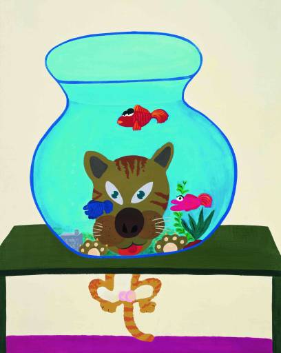 con il pesciolino e il gatto, un essere umano con una finestra sulle sue