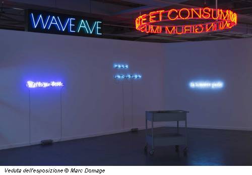 L’esposizione sembra voler nobilitare l’uso, duttile e singolare, del neon – mezzo sfruttato nella pop art, nell’arte povera, nella conceptual art e, certamente, nella light art – ripercorrendo il percorso storico-artistico nelle sue tappe principali, attraverso opere come “Neon” (del 1965) di Joseph Kosuth (artista noto per le sue “tautologie” luminose), “Concetto Spaziale #65B6” (del 1965) di Lucio Fontana, “Untitled” (del 1976) di Mario Merz, e poi con “Materasso” (del 1971) di Pier Paolo Calzolari, “Néon dans l’espace” (del 1969/96) di François Morellet, “Chromosaturation” (del 1965-2011) di Carlos Cruz Diez, “Rêvez!” (del 2008) di Claude Lévêque, Sarkis, e Dan Flavin con “Untitled” del 1968. Dividendosi in varie sezioni: “cerchi” e “quadrati”, “traiettorie” come curva descritta da un oggetto in movimento, “crisi” in cui protagonista è il rosso, il sangue e la notte, “sovraesposta” come ricerca del punto di maggior luminosità ; ma anche “la luce frantumata” con un divertente quanto inquietante video di Delphine Reist, “Averse” del 2007: una caduta di luci al neon con finale al buio.