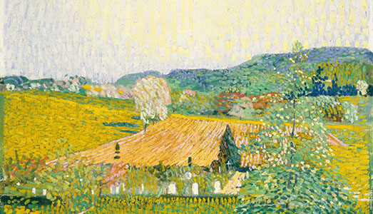 Amiet però continua a sperimentare, prendendo spunto da Seurat, Cezanne, Van Gogh e il suo naturalismo spinto all’apice, nella sua operazione di sintesi plastica e coloristica, sfiora addirittura l’astrazione. Ricordiamo che Amiet partecipò anche alla breve vita del gruppo “Der Blaue Reiter”, fondato tra gli altri da Wassily Kandinsky.