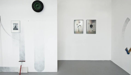 Sono parti di un tutto che non c’è più. É in Puglia, infatti, che Daniele è nato e cresciuto, per poi trasferirsi qualche tempo fa nella Pianura Padana. Un piccolo abitacolo della memoria è stato così ricostruito altrove, gli oggetti defunzionalizzati sono diventati elementi di decor, nel suo studio prima, dove li installa a ridosso dei muri per farne poi delle riproduzioni fotografiche stampate su alluminio (ed il grigio ritorna) e in galleria dopo. Ma non è solo una pratica di defunzionalizzazione e rifunzionalizzazione estetica, non è solo un reinvestimento emotivo su tracce di sé all’indomani di una perdita o di un abbandono che compie il giovane artista. Gli oggetti, trattati dapprima in maniera autobiografica, si iscrivono in una nuova dimensione in cui lo spazio entra in gioco attivamente per costruire altre forme ed evidentemente altri usi. Nonostante sia la parete a fornire il supporto agli oggetti, nel processo di produzione, essa stessa viene assimilata dall’opera ed abbandona per sempre il suo carattere di sfondo bianco. Il gesto si integra nella nuova visibilità, come il braccio che lancia il sasso in uno stagno: sulla superficie piana che lo accoglie e lo ingurgita in profondità, appaiono linee concentriche che – ritornando alla parete della galleria – si allungano e si deformano e si ri-formano in geometrie frontali, presaghe dello spazio della pittura, anche se Daniele pittore in senso stretto non lo è.
