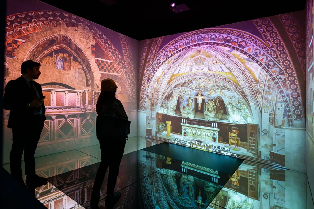 Con oltre sessanta opere e un percorso articolato in otto sezioni, la mostra non si limita a esporre, ma costruisce un discorso. Particolarmente rilevante è il lavoro di ricomposizione di polittici dispersi, così come la presentazione di opere raramente visibili e i risultati delle recenti campagne di restauro e indagine diagnostica. L’inserimento di strumenti immersivi – come il video dedicato alla Basilica di Assisi – non appare come una concessione spettacolare, ma come un tentativo di restituire la dimensione originaria dell’esperienza visiva medievale: quella del pellegrino, del devoto, del corpo in movimento nello spazio dell’immagine. In questo senso, si potrebbe dire con Walter Benjamin che ciò che qui si ricostruisce è una forma di “aura” non come distanza, ma come relazione: una prossimità carica di senso.