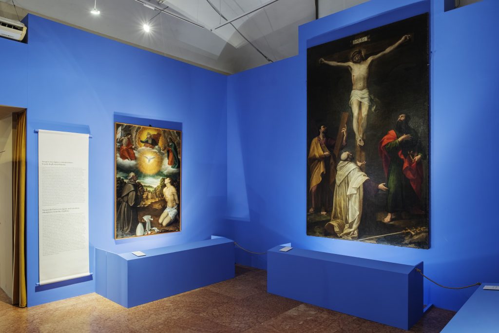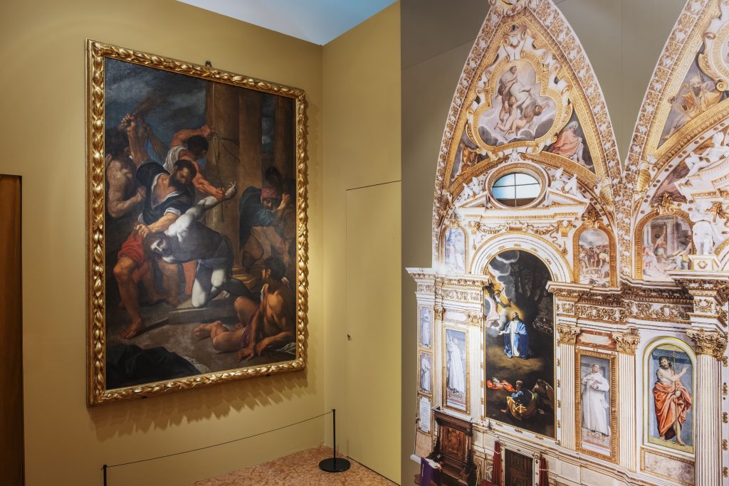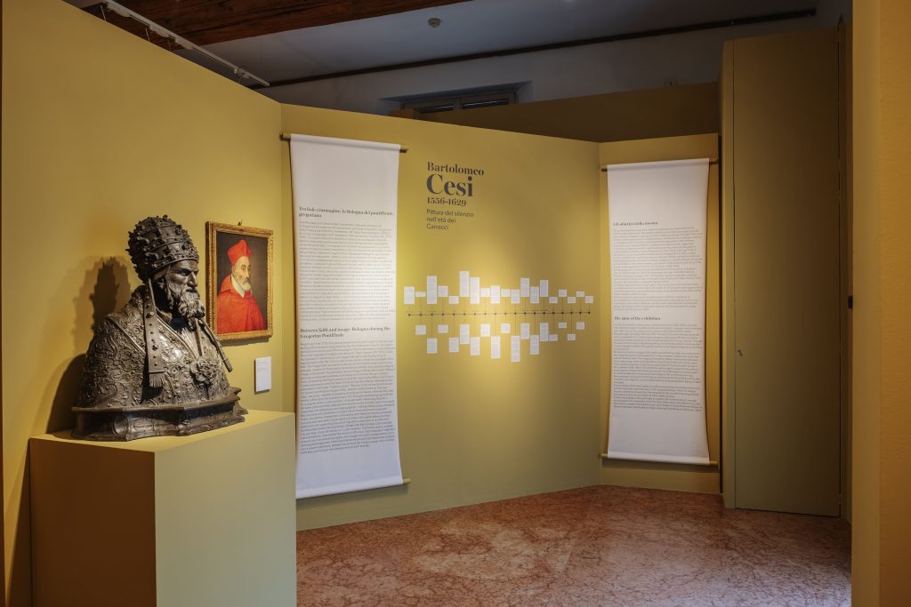 Il contesto è quello della Bologna al tempo del cardinale Gabriele Paleotti, vescovo della città dal 1556. E la prima sala parte proprio con un’introduzione alla figura dell’ecclesiastico felsineo e del ruolo svolto dall’immagine nel programma di riscrittura della predicazione in atto in quegli anni. Lo stesso cardinale, che pubblica nel 1582 il suo Discorso intorno alle immagini sacre e profane, parla di come l’immagine sia efficace proprio perché, a differenza della predicazione che pretende tempi più lunghi, sia invece immediata e si capisca «In un sol fiato», una «Bandiera spiegata», una «Tromba perpetua» rispetto a qualunque altra forma di linguaggio.
