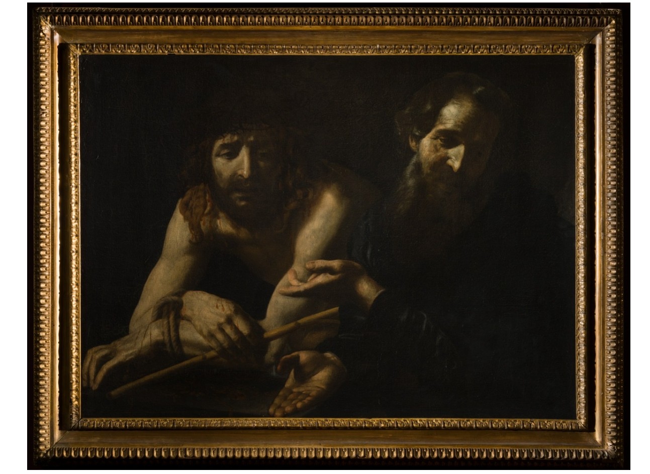 Il percorso dell’Ecce Homo ha qualcosa di romanzesco: ritrovato nel 2021 nel salotto di una casa privata a Madrid e messo all’asta come opera della “scuola di Ribera” – lo Spagnoletto, celebre pittore spagnolo attivo a lungo a Napoli –, con una base di partenza di appena 1500 euro, il dipinto ha rapidamente attirato l’attenzione degli studiosi. La storica dell’arte Maria Cristina Terzaghi ha identificato la tela con un’opera perduta che appartenne al viceré di Napoli Garcia Avellaneda y Haro e il consenso critico sull’attribuzione a Caravaggio è stato pressoché unanime, caso più unico che raro.