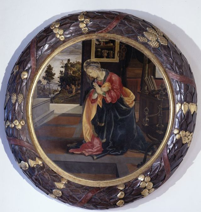 I magnifici tondi di Lippi esposti a Milano per questa occasione, realizzati tra il 1483 e il 1484 e dotati dai committenti nel 1490 di due preziose cornici in legno intagliato decorate da motivi floreali, foglie e frutta, argentate e dorate, opera forse di Antonio da Colle, risplendono grazie al raffinato ed elegante allestimento milanese che riprende i dorati raggi vivificatori dello Spirito Santo, affievoliti nel tondo dell’Annunziata rispetto a quello dell’Angelo, illuminando il nostro mondo bisognoso di Luce.