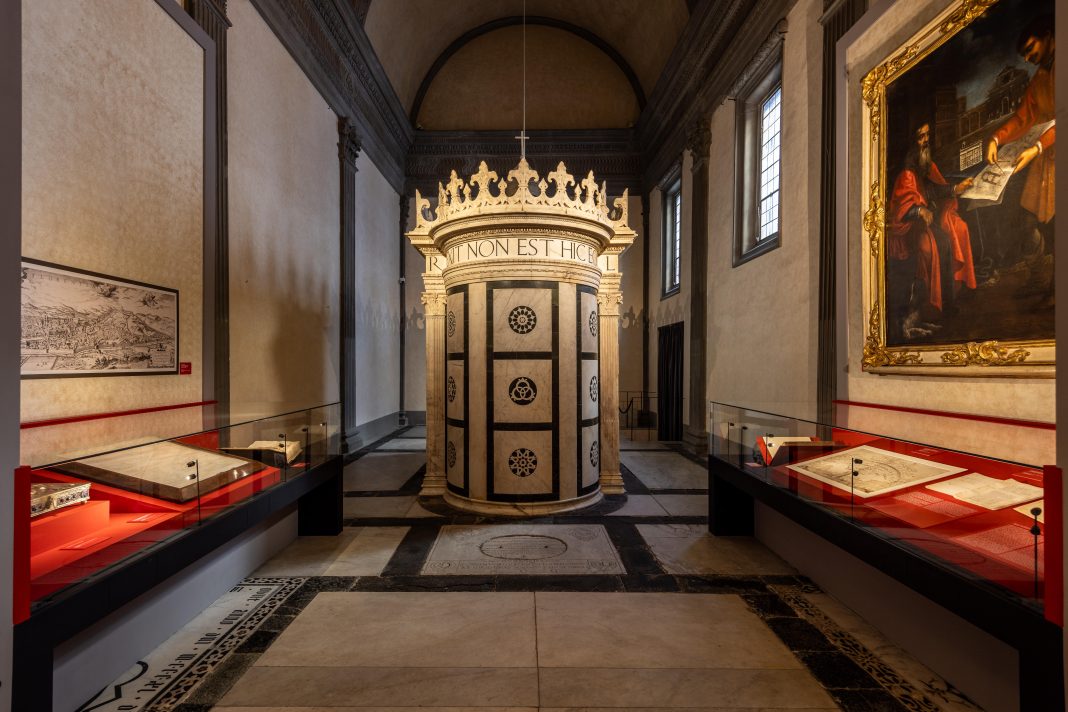 «Abbiamo deciso di dividere le sale per paese e città di provenienza, anche se nella mostra di Firenze il focus si è concentrato maggiormente sul rapporto tra la nostra città e Gerusalemme. Molte famiglie fiorentine hanno commissionato capolavori unici per il Santo Sepolcro e tutte le sale al piano terra del Marini sono dedicate a questo periodo. Molti dei pezzi vengono fuori per la prima volta da archivi e luoghi impensabili. Per esempio abbiamo esposto una bolla papale del 1439, che sancisce la pace tra Chiesa cristiana e Chiesa Ortodossa, con la firma del Papa e del Patriarca Greco. Questo documento era custodito nella Cassetta Cesarini a Palazzo Vecchio. Pensi che il rapporto tra Firenze ed il Santo Sepolcro risale addirittura all’anno Mille! Esponiamo anche la Stella di Betlemme, che rappresenta il punto preciso della nascita di Gesù Cristo».