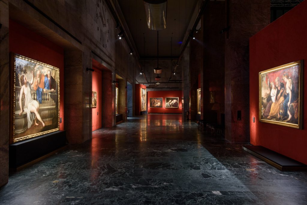 La ricostruzione storica è stata fondamentale per creare un percorso espositivo coerente, espressione delle tematiche più care all’artista in questo periodo: per la prima volta sono mostrate al pubblico italiano opere come Santa Caterina d’Alessandria, recente acquisizione della National Gallery di Londra, in confronto con un’altra Santa Caterina dell’artista proveniente dal Nationalmuseum di Stoccolma; oltre alla bellissima Giuditta e l’ancella con la testa di Oloferne in prestito dal Nasjonalmuseet di Oslo. Le opere straniere dialogano – spesso per la prima volta – con le opere di casa, provenienti dalle sale del Museo di Capodimonte e da Pozzuoli. Ed è proprio da Pozzuoli che proviene il San Gennaro nell’anfiteatro e i Santi Procolo e Nicea, restaurato per l’occasione.