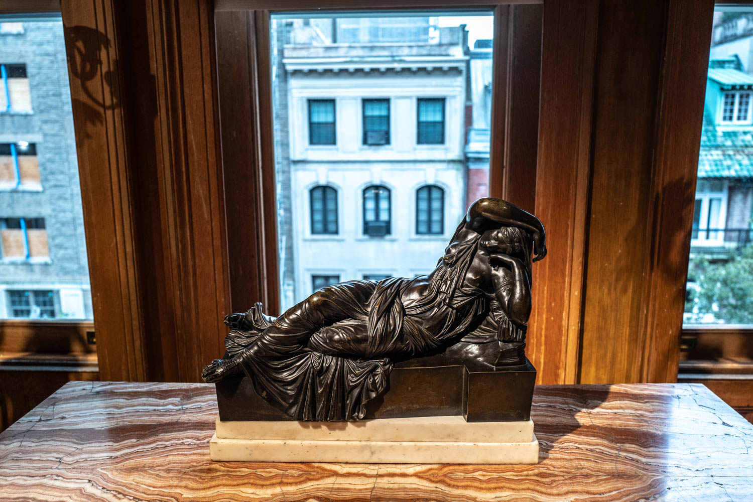 Tra le opere in mostra, il Raccolto della canapa a Caserta eseguito da Jackob Philipp Hackert per il re di Napoli; un ritratto del cardinale Carlo Rezzonico di Anton Raphael Mengs; un dipinto di Villa Albani di Vanvitelli che, insieme a Piranesi, ha prodotto alcune delle immagini più memorabili della Roma del XVIII secolo; una scena di porto dipinta su rame da Claude Joseph Vernet; una caricatura di Joshua Reynolds R.A.; una Vestale di Jacques-Louis David dipinta a Roma; il ritratto di Anton von Maron di due gentiluomini inglesi davanti all’Arco di Costantino; il Rockingham Silenus, una scultura del I secolo rielaborata dal celebre scultore romano Bartolomeo Cavaceppi; un set di candelabri a forma di Antonius-Osirus di Luigi Valadier e una consolle disegnata da Piranesi e realizzata per la Sala Egizia di Palazzo Borghese, opere che risaltano in contrasto col profilo dei palazzi dell’Upper East Side che si intravedono dalla finestra.