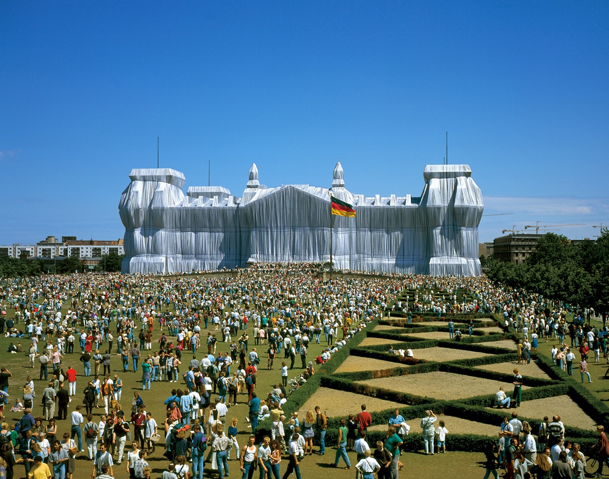 Il 24 giugno 1995, dopo anni di tentativi, discussioni parlamentari e ostacoli burocratici, Christo e Jeanne-Claude riuscirono a trasformare il Reichstag di Berlino, simbolo istituzionale della Germania, in una scultura temporanea di tessuto e corda a grandezza naturale. Fu un momento epocale per il popolo tedesco e per la storia dell’arte pubblica e, oggi, la città rende omaggio a quel progetto con un’installazione luminosa.