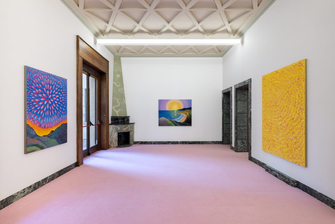 Jennifer Guidi è nata a Redondo Beach, California, nel 1972, oggi vive a Los Angeles e i suoi lavori sono inclusi in collezioni importanti come l’Hammer Museum e la Rubell Family Collection. Da MASSIMODECARLO, con la mostra Points on Your Journey (dodici nuove opere su lino, quattro sculture in bronzo dipinto, un lavoro su carta e una moquette rosa che fa da sfondo a tutto il percorso) esplora a tinte accese paesaggi che sono quasi lisergici, stralunati, tutti rigorosamente in giallo sorbetto, rosso vermiglio, blu lapislazzuli. Surreali. Forse rappresentazioni oniriche che trasformano panorami terreni in luoghi dell’anima, immaginari; forse omaggi alla lunga tradizione artistica del paesaggio, dai tramonti tormentati di Turner alle distese ossessive di Etel Adnan – lo scrive nel suo testo critico l’artista Lily Stockman. Quando? Dal 1° aprile al 24 maggio. Dove? A Casa Corbellini-Wassermann, capolavoro dell’architettura degli anni ’30, in viale Lombardia 17.