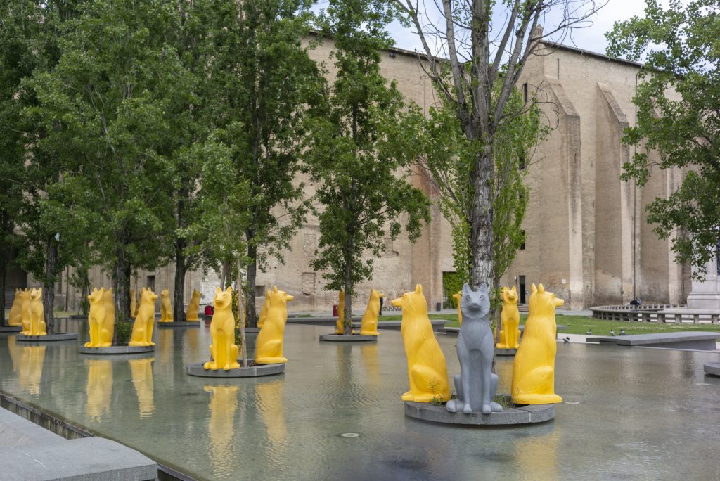 29 lupi gialli e un lupo grigio sono entrati nel centro di Parma e adesso, mansuetamente seduti sulle loro zampe, si lasciano fotografare e si guardano intorno, quasi augurandoci buona sorte ma anche ammonendoci perché, insomma, questi sono tempi niente affatto concilianti ma che ci invitano ad agire. Insomma è Tempo di Lupi: questo il titolo dell’installazione inedita del collettivo Cracking Art, presentata da PARMA 360 Festival della creatività contemporanea, nell’ambito di Parma Capitale della Cultura 2021. E come è tipico dei lupi, animale nobilissimo e simbolo dell’Italia, abitante atavico della dorsale appenninica, nume tutelare di boschi e foreste della nostra Penisola, l’installazione sarà itinerante. Dal 14 al 16 maggio, infatti, i Lupi di Cracking Art saranno collocati nello specchio d’acqua di Piazzale delle Pace, in occasione delle Giornate FAI di Primavera, quindi, dal 17 maggio al 18 luglio, si sposteranno alla Stazione di Parma, diffondendosi tra le aree al secondo piano dello Spazio Viaggiatori, del Mezzanino e del Piano interrato.