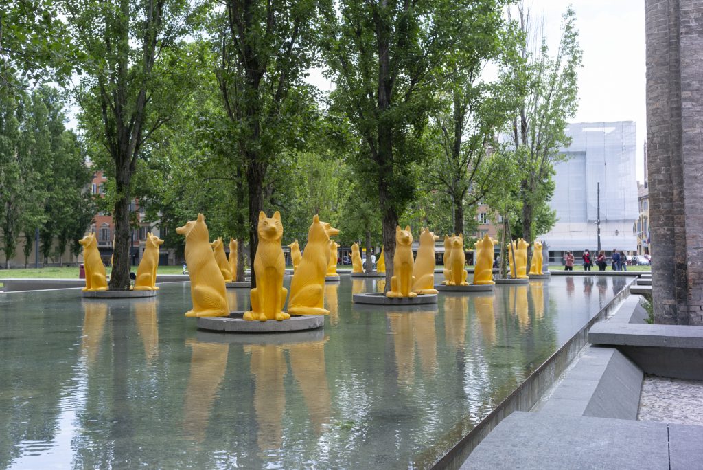 Un obiettivo condiviso anche da PARMA 360, festival dedicato all’arte e alla creatività, in particolare nelle loro declinazioni che riguardano la rigenerazione urbana e la rifunzionalizzazione degli spazi cittadini, per un coinvolgimento attivo della cittadinanza. I 29 Lupi gialli rimandano quindi al Giallo Parma, lo storico colore che caratterizzava le facciate delle abitazioni della città per rievocare la dimensione domestica e protettiva del luogo. Il lupo grigio, invece, è un riferimento simbolico al lupo grigio appenninico che abita i territori montani e collinari dell’Appennino tosco-emiliano e che sempre più spesso si avvicina ai centri abitati, a causa del cambiamento climatico.