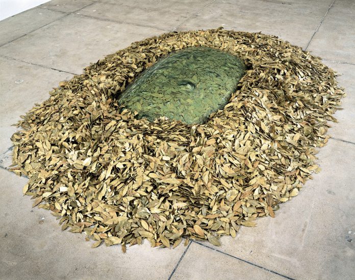 Un museo così “prepotente” a livello architettonico si rivela spesso un’arma a doppio taglio: può custodire incorniciando con estremo carattere, o può finire per sovrastare il suo contenuto. Nel caso di Art of the Earth, assistiamo a una “pacifica convivenza” fra le due entità. È come se il curatore avesse voluto mettere in equilibrio opere e cornice senza far prevaricare una parte sull’altra, intervenendo soprattutto sulle soglie visive e sulle distanze tra le installazioni. Non a caso, la sfida più radicale della mostra è stata probabilmente proprio quella museografica. «È nel materiale che le opere esprimono il loro rapporto più forte con il tempo. Ed è per questo che ha rappresentato una sfida per questo contesto, tradizionalmente associato alla conservazione nel senso più fondamentalista del termine, il contesto museale in cui, di norma, l’obiettivo è quello di eliminare completamente il futuro organico dei materiali», ha affermato Cirauqui. Il Guggenheim, già impegnato per la neutralità carbonica entro il 2030, utilizza Arts of the Earth come prototipo del museo di futuro: un luogo in cui la sostenibilità non è solo un messaggio, ma un metodo, un approccio, verificabile anche nelle sue procedure operative.