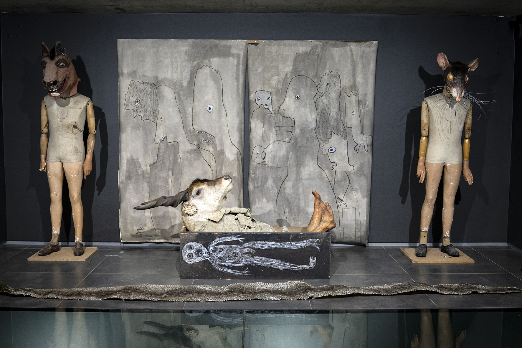 Sulla scia della poetica di Ballen, sarà approfondito il rapporto psicologico profondo che l’uomo instaura con il mondo naturale. Fin dall’inizio della carriera artistica di Ballen, l’animale è stato un simbolo importante. Le opere di “End of the Game” sono tratte da varie serie della metà degli anni ’80 in poi, e comprendono foto, installazioni, pitture e disegni. Si parte dai ritratti di uomini armati, selezionati da una delle prime serie fotografiche di Ballen, per la serie “Platteland: Images from Rural South Africa”, fino ai light boxe realizzati con le immagini della serie “Theatre of Apparitions” del 2016, esposte anche alla Biennale di Venezia del 2022.