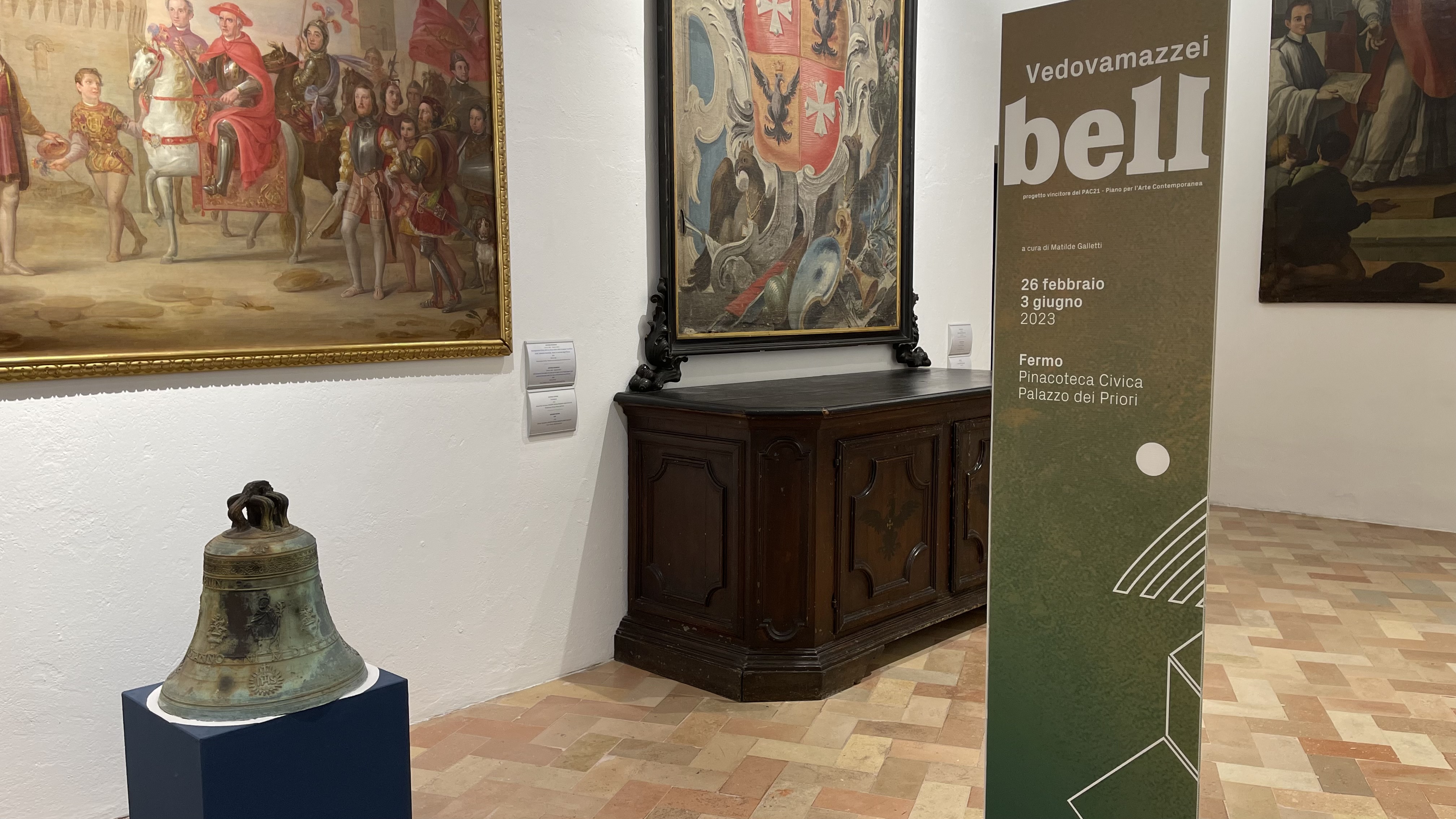 Mentre continua a godersi la mostra di Vittorio Sgarbi sui Pittori della Realtà e i suoi effetti in termini di flussi museali e turistici (i cui dati, dicono i promotori, sono più che positivi), la città di Fermo inaugura un’altra esposizione, in parallelo, all’interno della stessa sede di Palazzo dei Priori, nelle sale adiacenti dove ha sede la Pinacoteca Civica. Proprio lì, dove dimorava da tempo un’antica campana, che è finita col suscitare la curiosità della coppia di artisti Vedomazzei. Da qui nasce il progetto “Bell”, ideato e curato da Matilde Galletti, con il quale la città di Fermo si è aggiudicata il premio PAC2021 – Piano per l’Arte Contemporanea, promosso dalla DGCC – Direzione Generale Creatività Contemporanea del MIC – Ministero della Cultura.