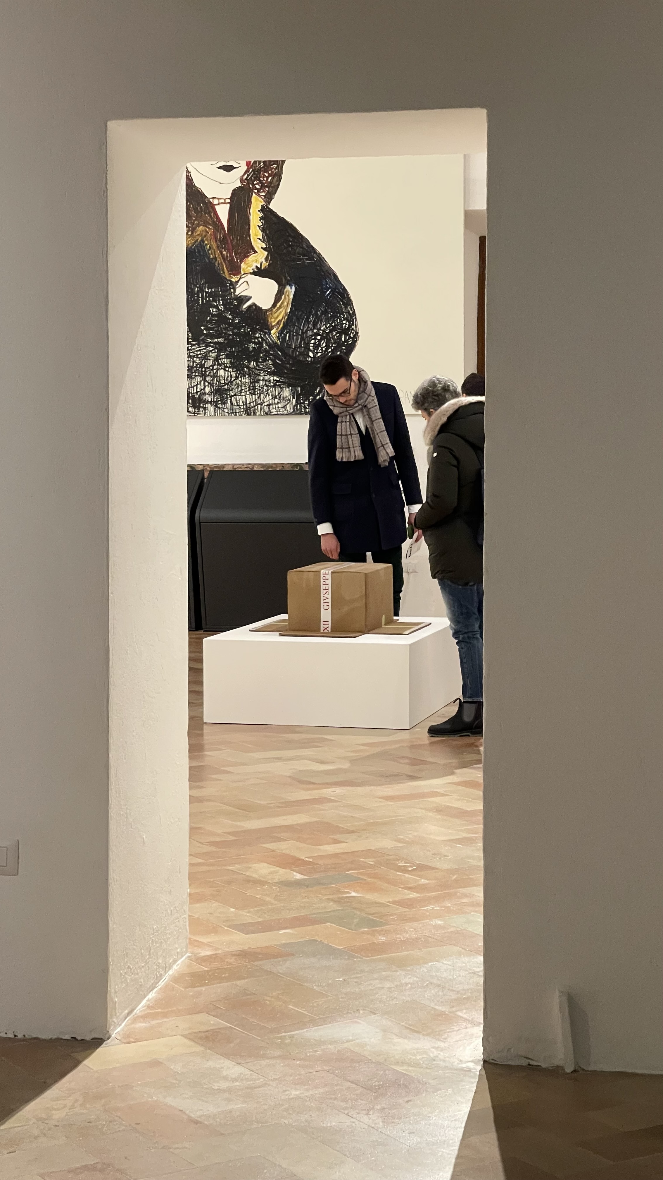 Gli artisti hanno quindi scelto di rappresentare quello che per loro è il simbolo della nostra contemporaneità più contingente, un oggetto che, soprattutto in questi ultimi, delicatissimi due anni, è stato sempre presente nella quotidianità di chiunque. Si tratta di una scatola di cartone aperta e capovolta, consumata e abbandonata dopo aver recato il suo dono. Il contenuto, noto e atteso da chi lo ha ordinato, è stato l’unica certezza in un frangente di labilità e incertezze. Una scatola, una delle tante che durante i duri periodi di lockdown, di isolamento e desolazione infinita, ci hanno fatto sentire una comunità, ci hanno raccolto come le campane di una volta ci raccoglievano e facevano sentire uniti.