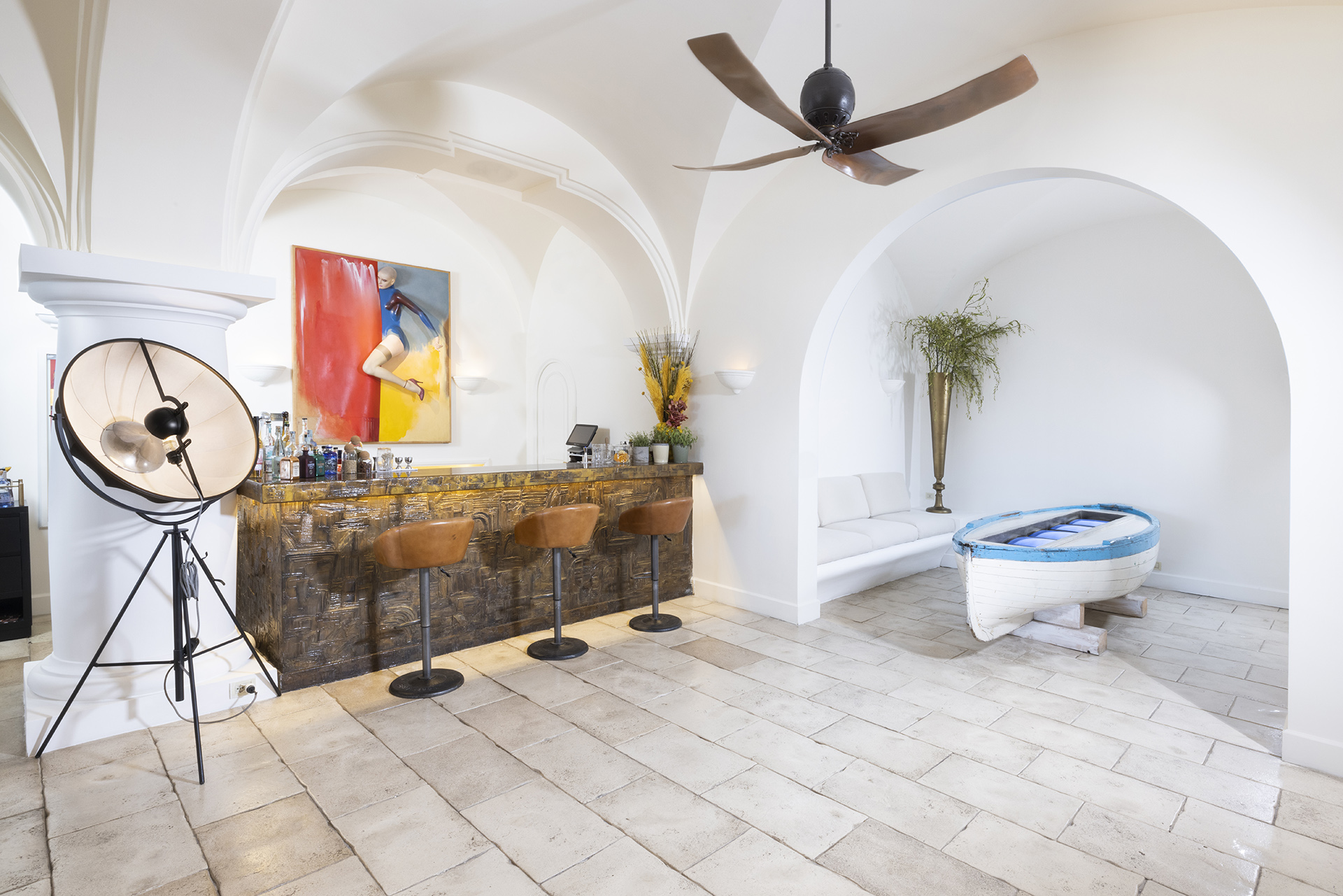 Si percepisce da subito la volontà di avvolgere il visitatore, o per dire più correttamente il cliente in una dimensione del lusso che si propone con una interpretazione focalizzata all’esperienza. Senza prescindere dall’idea del bello e dell’armonia, senza prescindere dunque dall’arte, nulla si limita a elemento decorativo, le opere sono presenza viva e consentono allo sguardo attivo di abitare lo spazio, invitare alla riflessione e stimolare il dialogo. Ogni opera si amalgama e arricchisce l’esperienza dell’ospite.