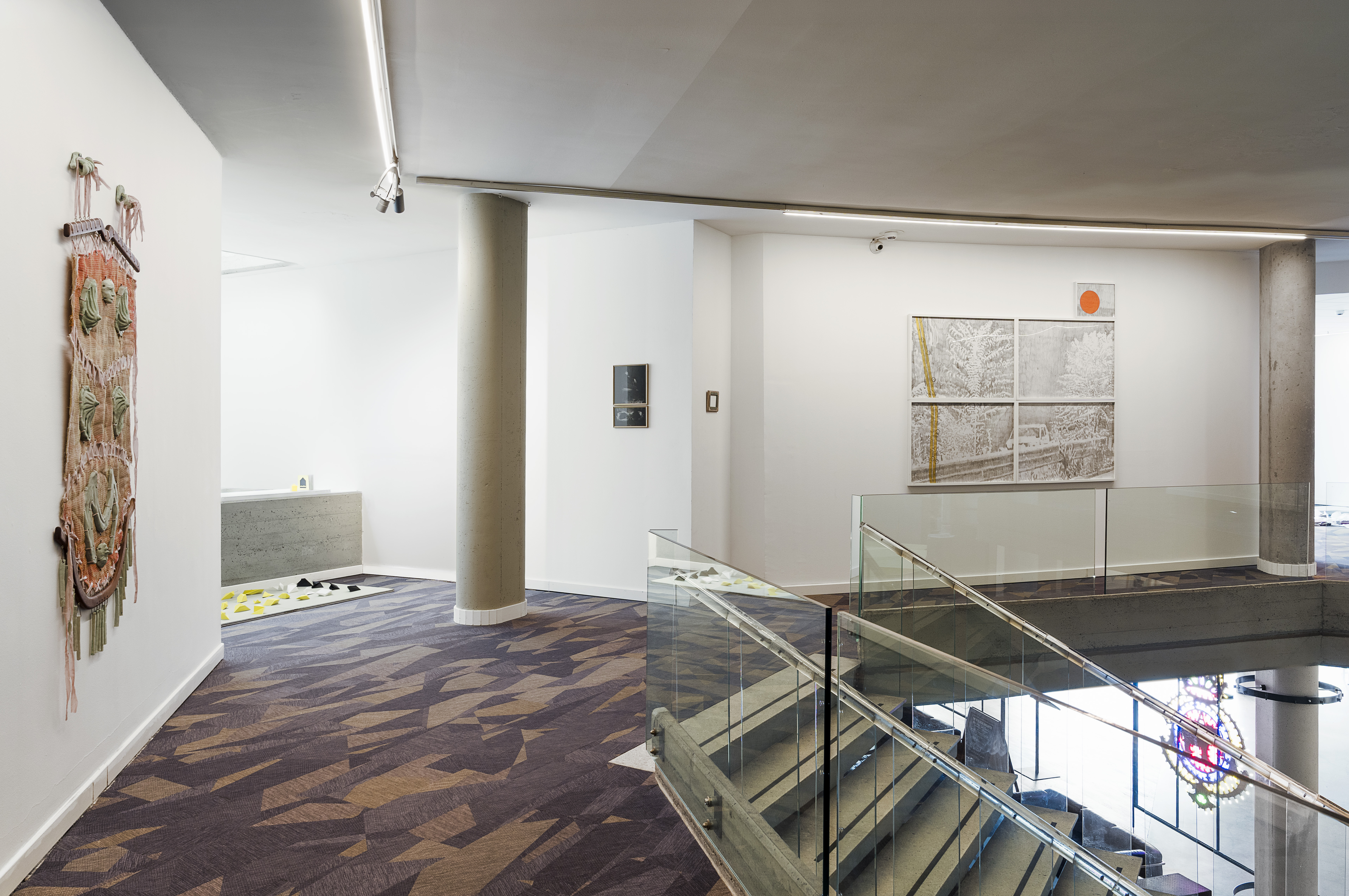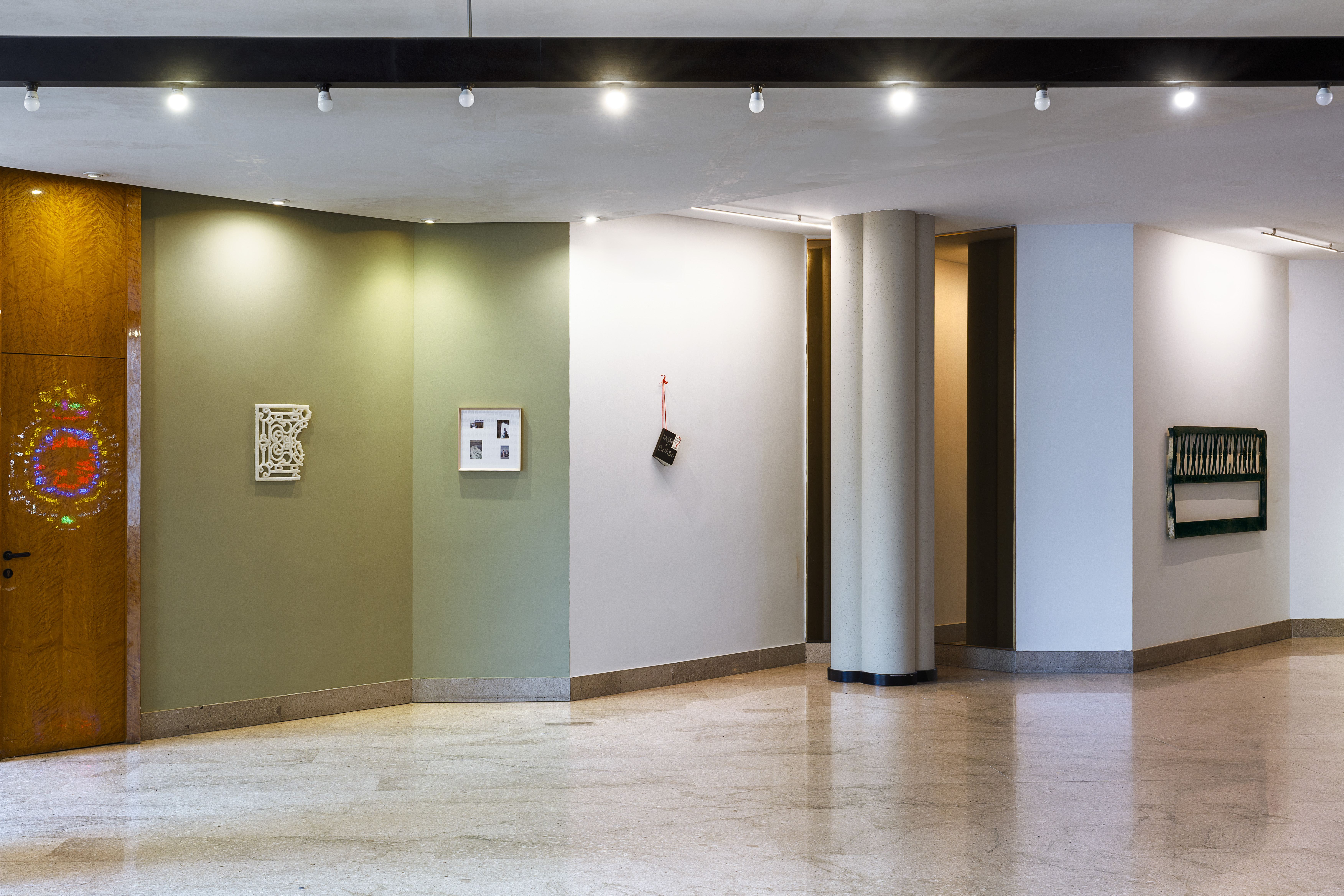 Tra le installazioni principali si distingue Passi 2026 di Alfredo Pirri, opera permanente allestita nella suite 101. Il pavimento in specchio frantumato accoglie tre campiture celesti trasparenti che si intersecano formando un triangolo intenso, evocando Sant’Agata, Santa Lucia e Santa Rosalia. Pirri racconta: «Ho immaginato che questa separazione potesse essere letta come un graffio sulla superficie delle cose… un atto di ribellione, oltre che di fede». La luce emerge dal buio, immersiva e fecondatrice, trasformando ogni passo in gesto rituale e riflessivo. La suite diventa così una stanza di decantazione, dove il visitatore sperimenta un senso di svuotamento emotivo, come suggerito dall’artista: «Mi interessa che chi entra avverta una decantazione dei propri sentimenti, per arrivare a qualcosa di essenziale».