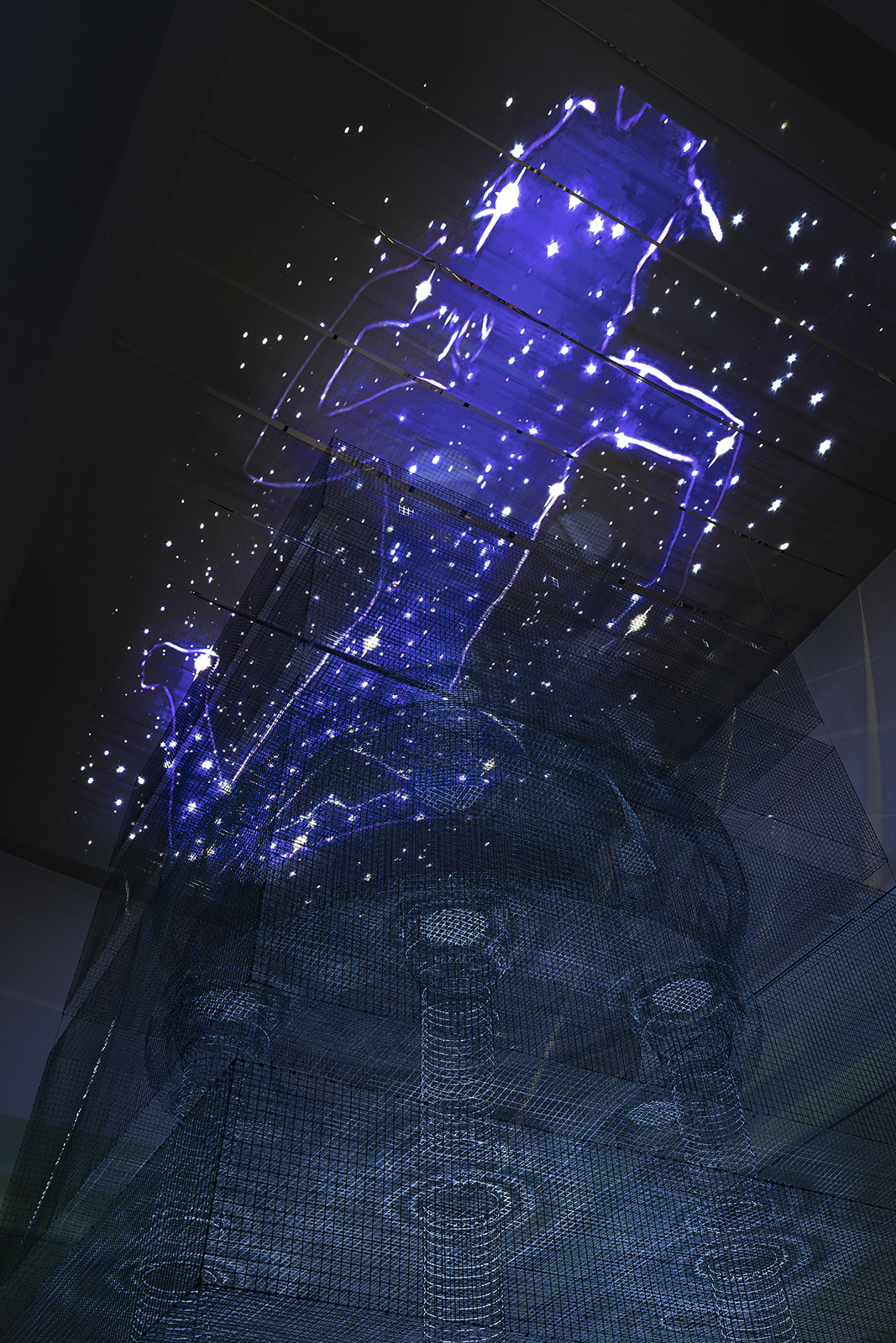 Il lavoro di Studio Azzurro, originariamente intitolato Cieli d’Italia, è un grande affresco animato che simula un viaggio lungo un’Italia immaginaria, osservata con gli ‘’occhi in alto’’, un punto di vista che inquadra il mutare del cielo nel corso di una giornata. L’ecosistema sonoro progettato da Magaldi si compone di variazioni sonore, climax e pause ed è in connessione con le immagini. Ciascun visitatore, tramite un apparecchio apposito, può aggiungere e amplificare elementi sonori nello spazio, che, secondo la visione dell’artista, diviene «naturale e organico, un luogo in cui i visitatori possono immergere se stessi secondo la loro natura».
