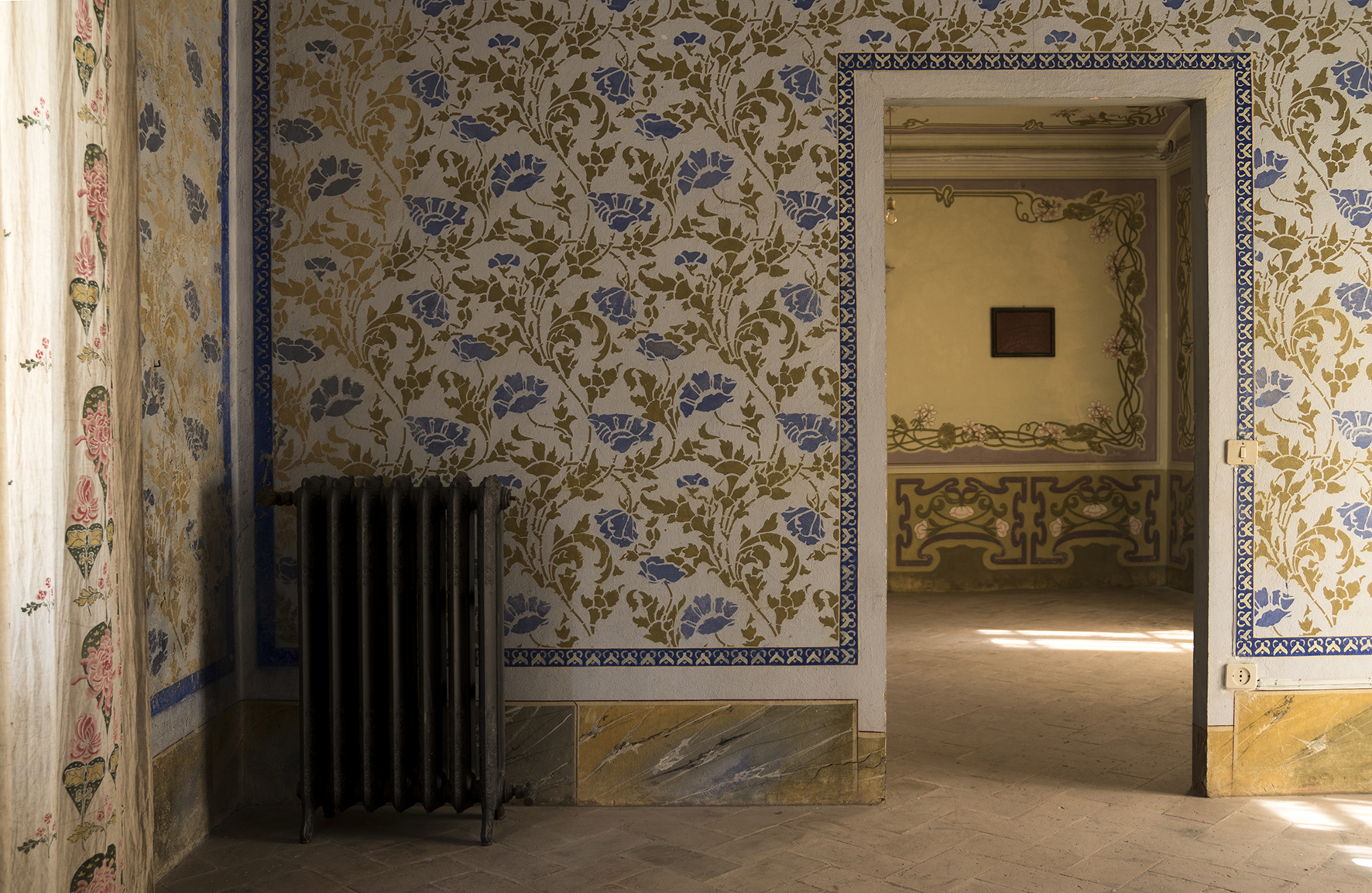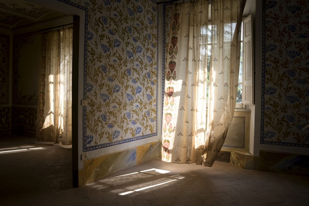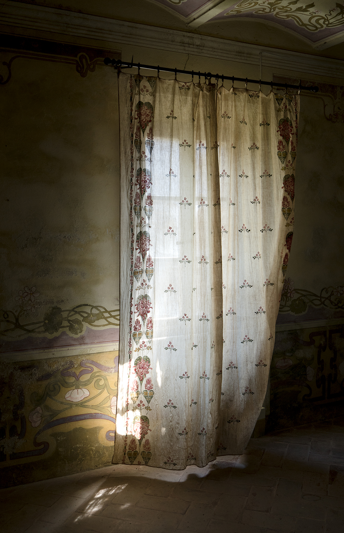 Cattività è l’opera con cui Gian Maria Tosatti ha vinto il Premio Artisti per Frescobaldi, tra i motivi della selezione: «Il progetto incoraggia una riflessione ponderata sulle possibilità di collaborazione tra umanità e natura, come giocosamente suggerito dal vento prigioniero che muove dolcemente le tende dipinte in una stanza dove tutte le finestre sono chiuse». Riattivando l’energia di uno spazio tenuto chiuso da tempo, l’artista ha innescato una serie di associazioni complesse, ridando vita ai significati latenti dell’architettura domestica e dell’arredamento storico. Tra le pareti dipinte con motivi floreali tipici dell’Art Nouveau, Gian Maria Tosatti ha lavorato su due elementi caratterizzanti della collina di CastelGiocondo: il vento e il vino. Il primo imprigionato in due delle stanze di questo luogo unico, il secondo trasformato in forma solida e racchiuso in una cornice.