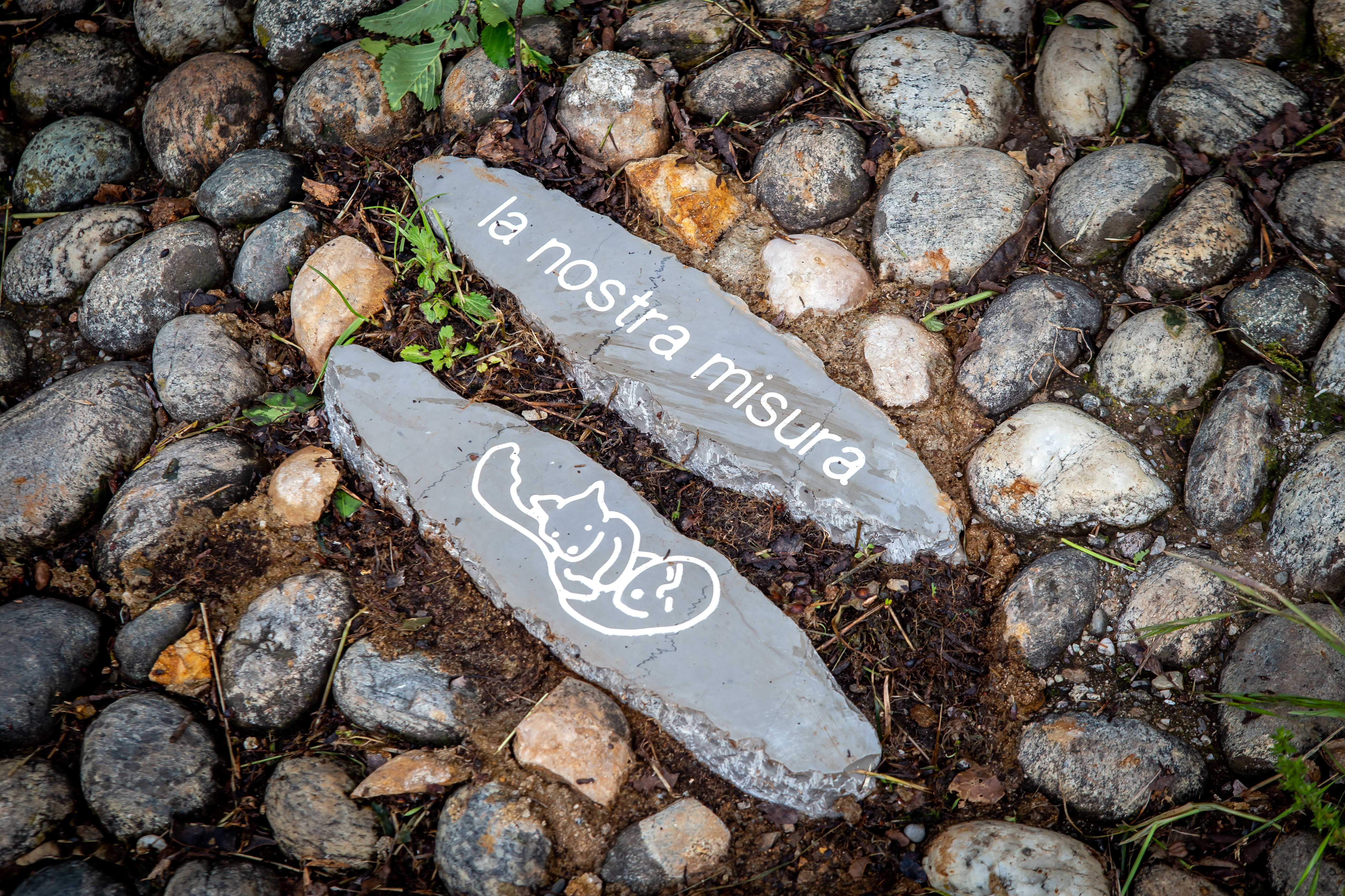 «Che cos’è la comunità? È mutante e complessa, impossibile da definire». Con questa domanda e qusta risposta, Claudia Losi ha iniziato il proprio lavoro, per sviluppare il progetto che sarebbe diventato parte integrante del territorio che lo accoglie. Così, 45 elementi, sculture in pietra locale donate dalla ditta Favretto, riprendendo la forma ogivale delle pietre coti – tipiche del territorio nembrese – accompagnano con le loro incisioni discrete chi percorre e vive il tratto tra Nembro e Lonno, entrando in relazione con la memoria del paesaggio naturale e antropico del sentiero. Le opere, fruibili solo camminando, indagano la specificità del paesaggio, diventando vere e proprie tappe, inciampi che lo sguardo può incontrare – o sorvolare.