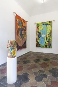 L’esposizione è corredata da un testo critico di Irina Zucca Alessandrelli ed è costituita da un progetto site specific, pensato dall’artista appositamente per l’occasione. Il progetto si compone di due tele di grandi dimensioni, che sono appese alle pareti al modo di antichi arazzi rinascimentali, cui si aggiunge un lavoro scultoreo in ceramica e una stampa xilografica.