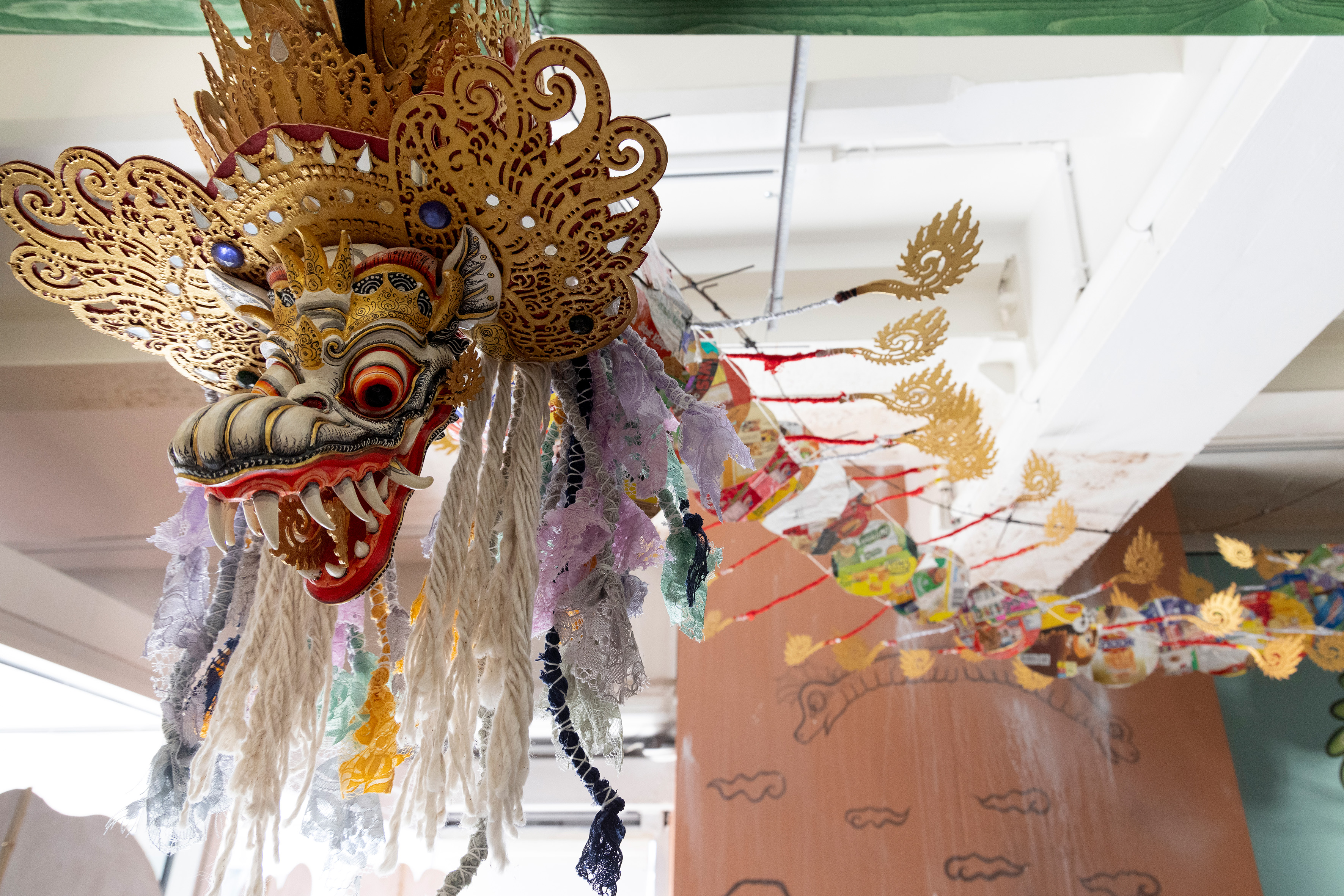 Ospitata nello spazio della Kulturstiftung Basel H. Geiger, fondazione culturale dedicata all’interdisciplinarietà delle arti e fondata nel 2019 dalla filantropa Sibylle Geier, la mostra si presenta subito come un’esperienza da vivere con la propria mente e i propri sensi. Se da fuori l’edificio appare ben pulito nelle forme e nei colori (ma con degli indizi posizionati nelle vetrine), una volta entrati ci si ritrova in una traduzione di una Bali dall’aria autentica, nel bene e nel male. Presentata come un’opera site-specific, ROOTS ha la forza di andare oltre al concetto di pura installazione fatta di immersività: si tratta di un intervento autoriale ben consapevole e puntuale, dettato dalla profonda conoscenza verso le sfumature di una cultura stratificata.