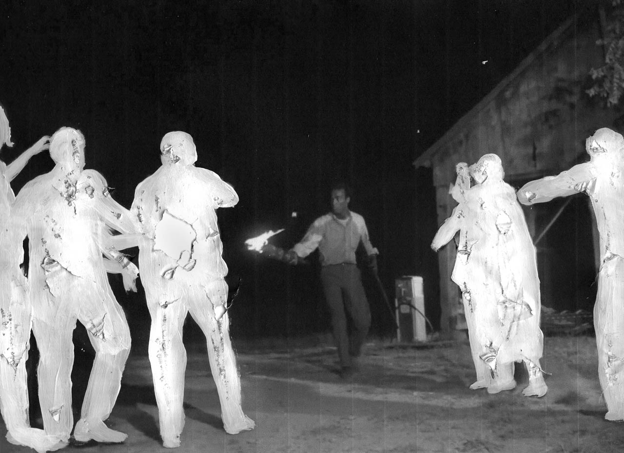 I Am Not Legend, della durata di 1h12’ e di cui potete trovare il trailer qui sotto, «è stato realizzato stampando in dimensione A4 tutti i fotogrammi de Night of the Living Dead (1968, uscito in Italia con il titolo La notte dei morti viventi, ndr) di George Romero e intervenendo su ogni foglio con la pittura bianca al fine di cancellare la presenza degli zombie dal film originale. Ottenute oltre 100mila tavole, sono state in seguito digitalizzate e rimontate seguendo la nuova sceneggiatura creata dall’artista che ha utilizzato migliaia di citazioni tratte da un centinaio di celebri film, romanzi e canzoni.