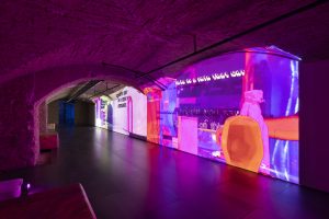 Il video Iolas del 2014 è un incunabolo adatto della mostra: la storia di un grande e raffinato collezionista greco il cui patrimonio alla sua morte viene disperso poiché lo stato greco non lo compra. Un umore romantico e nostalgico pervade il video e tutta l’opera di Angelidakis, che del giano bifronte della contemporaneità, oscillante tra reale e virtuale, evidenzia la natura profondamente ibrida e quindi queer, queer proprio come l’artista.