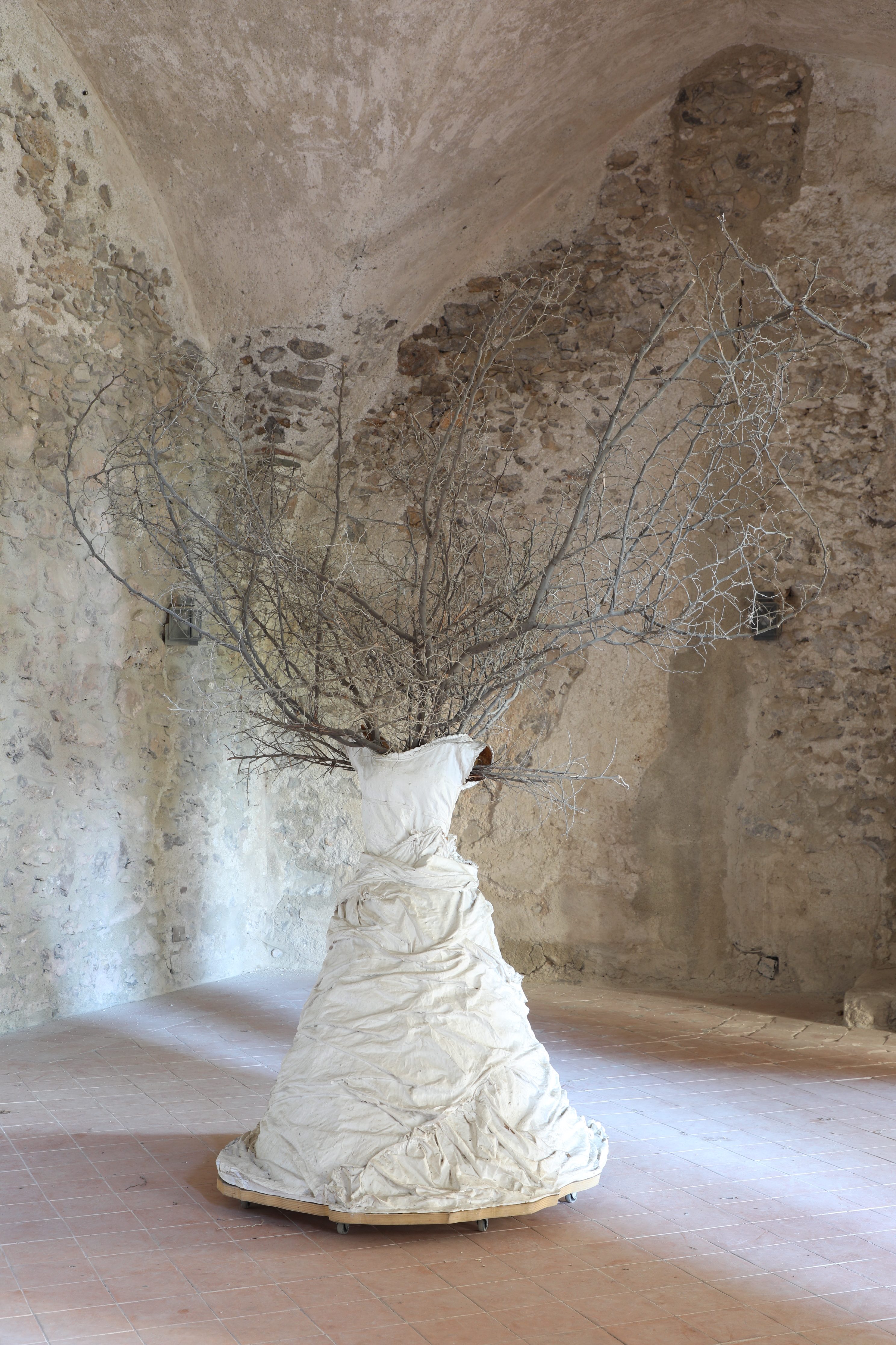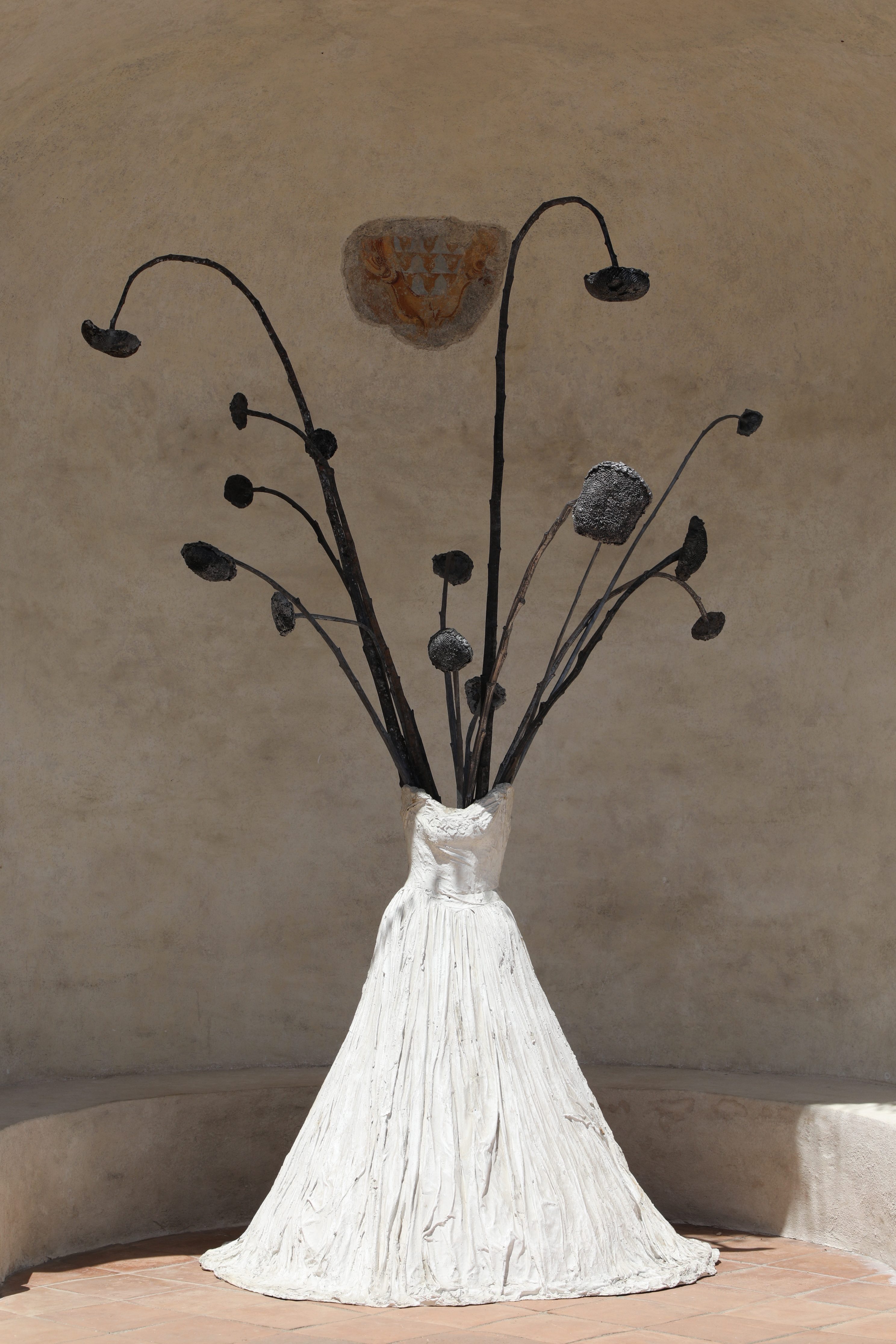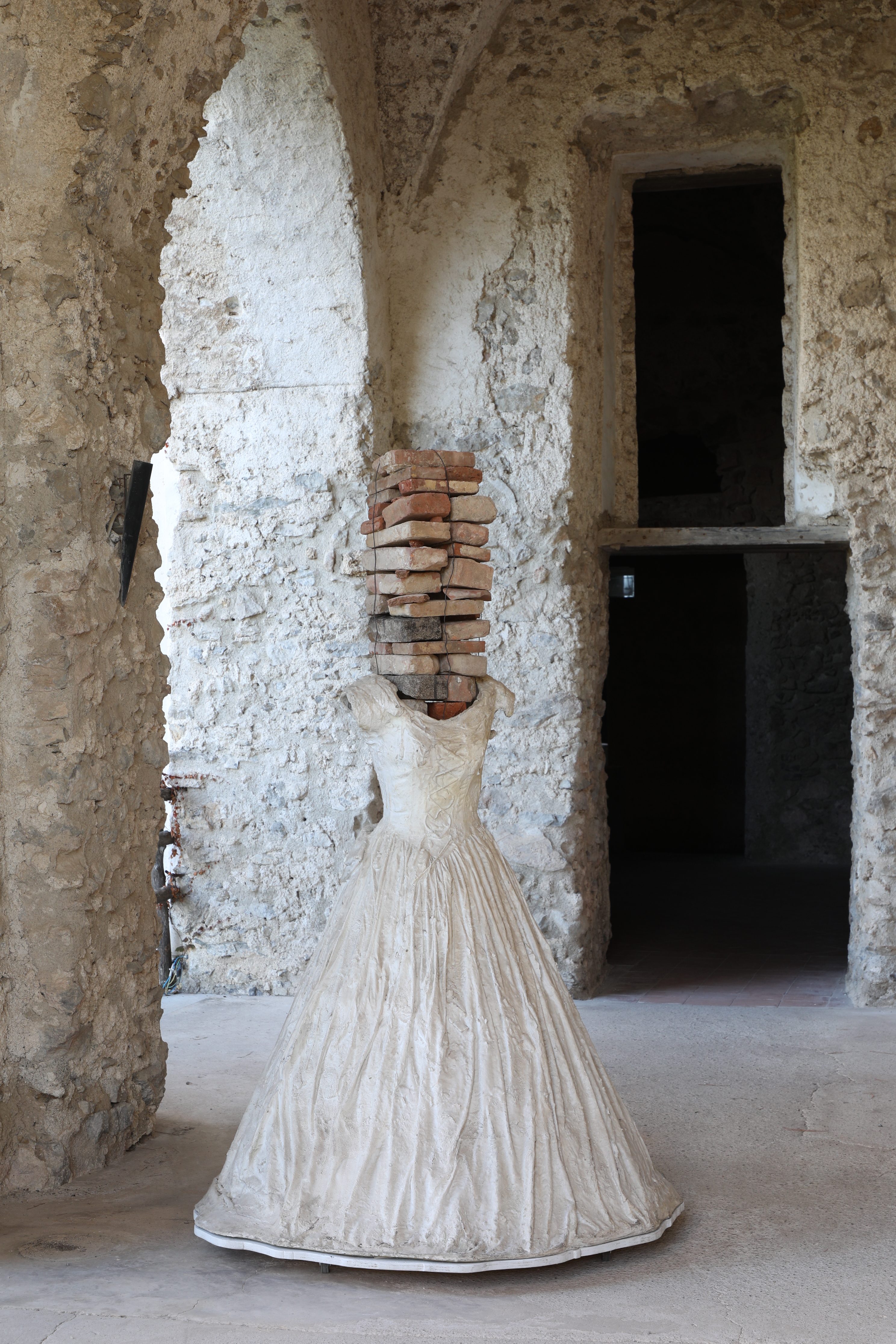 Ridotte a pura materia o tratto essenziale, in abiti irrigiditi nel gesso e nel piombo, con apparati di libri e di filo spinato, queste donne si affermano come dispositivi di crisi: tra offerta rituale e testamento culturale, mettono in discussione la continuità della storia e il potere della rappresentazione. Sono presenze liminali, che Kifer trasforma in rovina e in monumento.