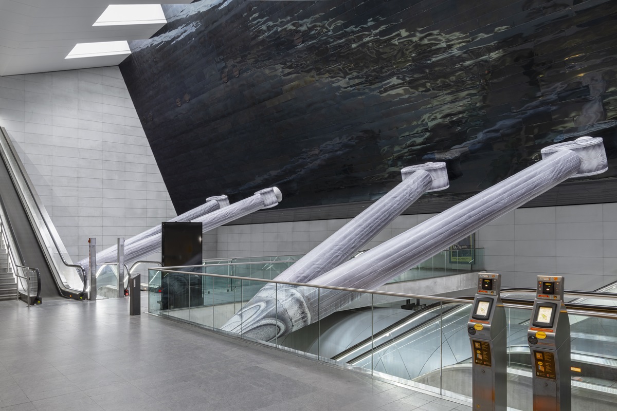 Influenzato dalle colonne del Capitolium, in cui le parti ricostruite sono stare realizzate in mattoni per distinguerle dal marmo delle parti originali, Andrea Angelidakis, con il cuore da artista e la testa da architetto, trasforma i contrafforti con sovrastano la discesa ai binari in quattro colonne greche dalla lunghezza di tredici metri ciascuna. L’artista ha scelto di intervenire sugli elementi strutturali della stazione, non inserendo nulla di nuovo ma rinnovando il preesistente, conferendogli un nuovo valore, trattandolo con un rispetto reverenziale che, di solito, viene attributo alle rovine storiche. Uno dei concetti alla base di questa installazione è la necessità di rendere quest’opera fruibile da tutti, non semplicemente a uso decorativo ma affinché si inserisca nella quotidianità delle persone, provocando una reazione, un’emozione.