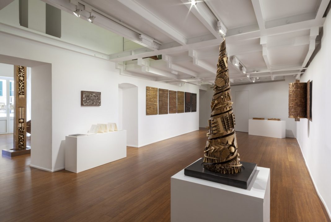 Duttile, ricordatevi questo aggettivo. Perché non è solo la fusione in bronzo ad esserlo, ma l’artista in tutto sé stesso. Che sa articolare quella sua peculiare calligrafia iso-arcaica nell’astrazione ritmica – alla Kandinsky – dei Frammenti; come pure in una scrittura dove la scultura si fa matrice di un bassorilievo “stiacciato” alla Donatello, per interpretare attraverso pagine di Cronaca crittografie dedicate ad amici/colleghi, come Ugo Mulas. Testi indecifrabili, diversamente dalla dinamicità alla Paolo Uccello della Battaglia di San Romano assunta dai suoi simboli/segni nel 1995, col piccolo studio Le battaglie. O nella metà degli ’80 dalla contraddizione in termini materici su cui verte l’imponente – e allegorico – Papiro I.
