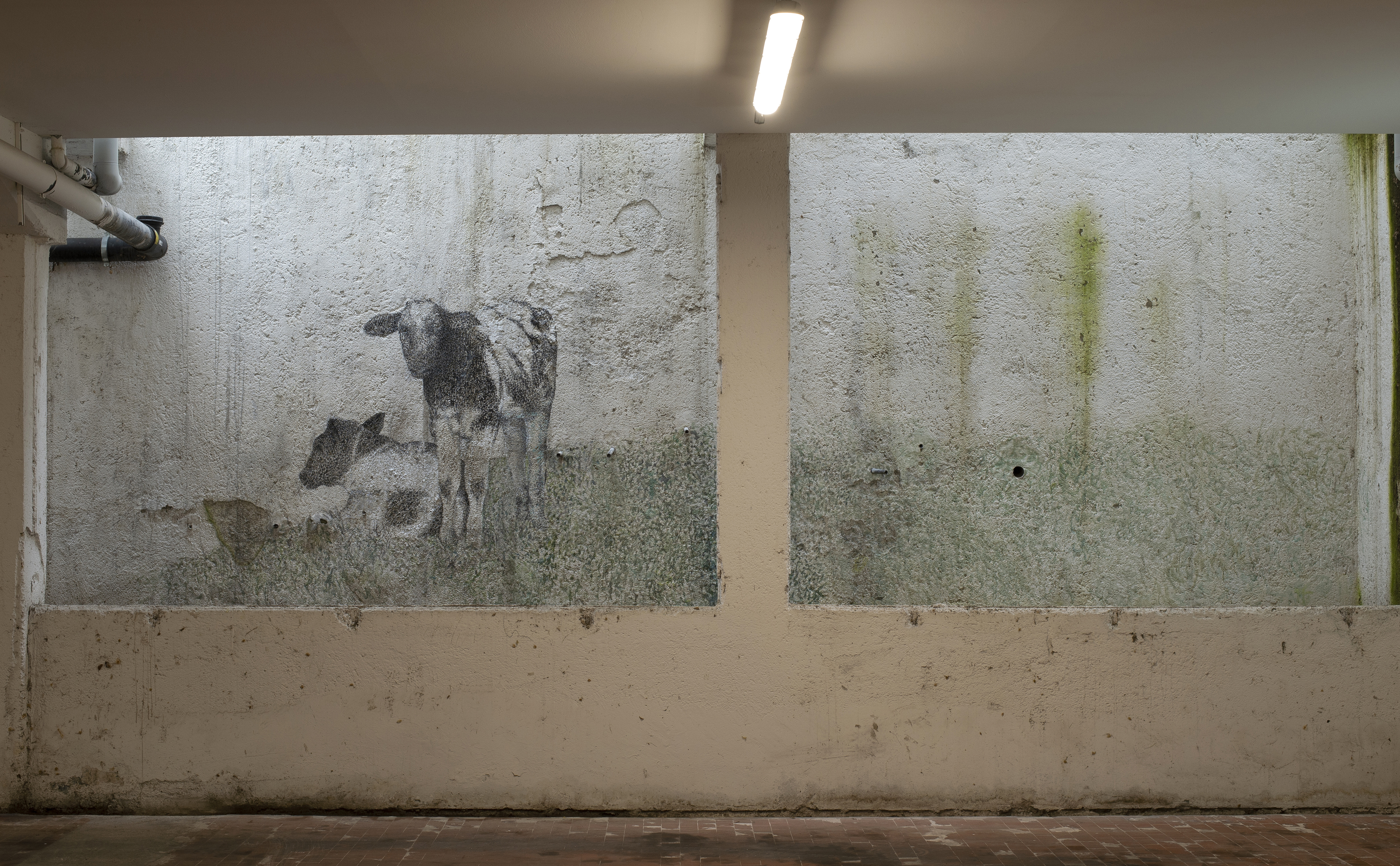 «Di passaggio nel nuovissimo garage della compagnia di assicurazioni con cui lavoro, Assicurazioni Generali, abbiamo visto le belle pareti bianche: centinaia di metri quadri di muri, cosa che ormai non capita più di avere a disposizione.