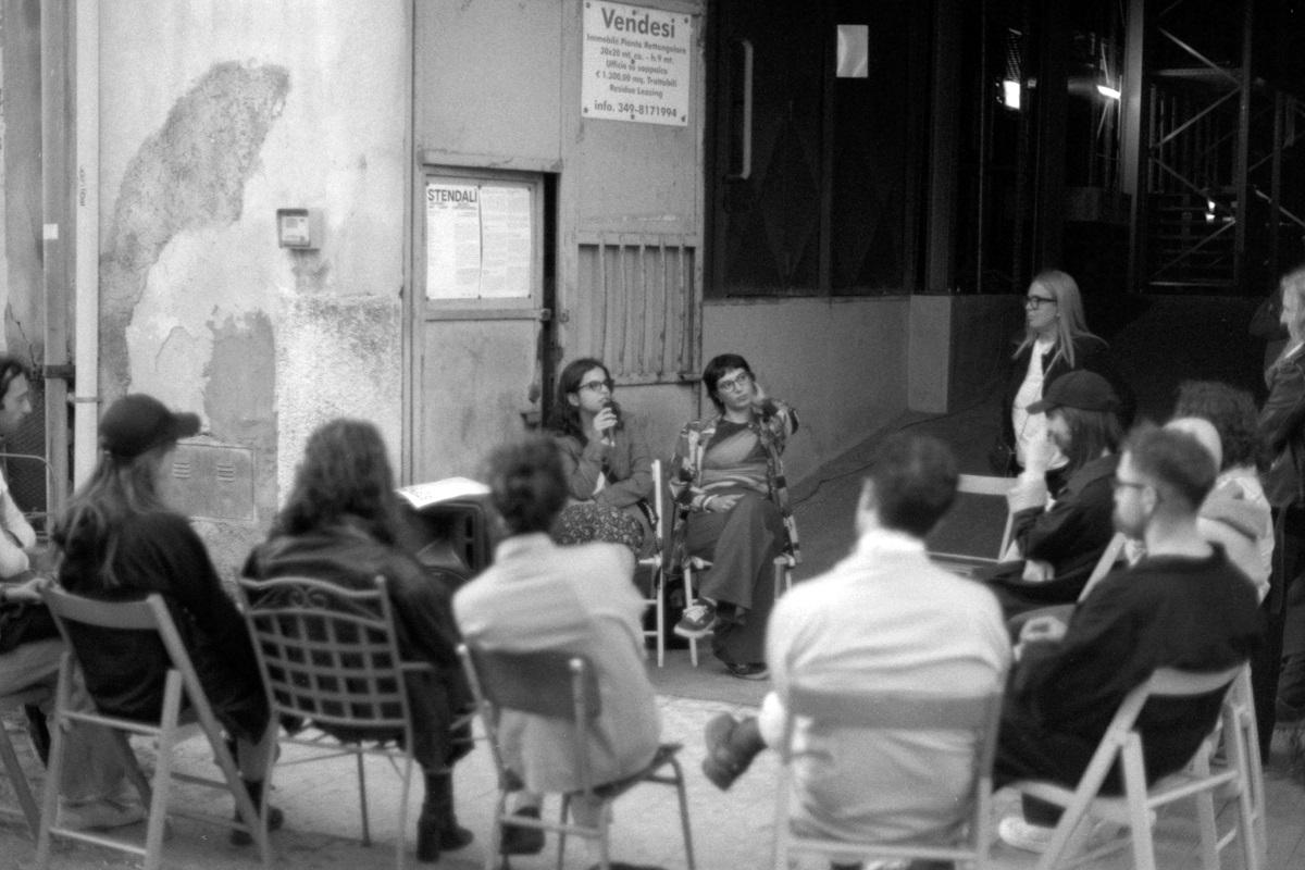 RR «Occuparsi di arte contemporanea come giovani curatrici e operatrici culturali significa creare progetti che mettano in campo strumenti e modalità molto diversi e che coinvolgono più ambiti artistici. Fin da subito ci siamo ritrovate nell’esigenza di non fare una mostra e di provare a creare un evento legato a una temporalità e geografia ben precisa. Il motivo che ci ha spinto verso questa scelta è stato mosso dall’idea di pensare un progetto che si muovesse in maniera dinamica creando dei rapporti orizzontali e collaborativi tra artisti/e e curatrici, instaurando un rapporto tra musica, editoria, arti performative e visive. La nostra idea è stata di fare un evento che riprendesse all’idea di sagra ma riletta in chiave contemporanea. Proprio per questo è stata fondamentale la collaborazione con il Festival Opera che ha curato i dj set serali e con Panopticon zine, progetto editoriale indipendente curato da Mattia Maisto e che si occuperà della pubblicazione relativa all’evento e che durante la giornata del 29 aprile ha organizzato ALLA ROMANA #5, un pranzo all’interno degli spazi di viaraffineria e aperto a tutte le persone che volessero avere modo di conoscere le persone coinvolte nel progetto».