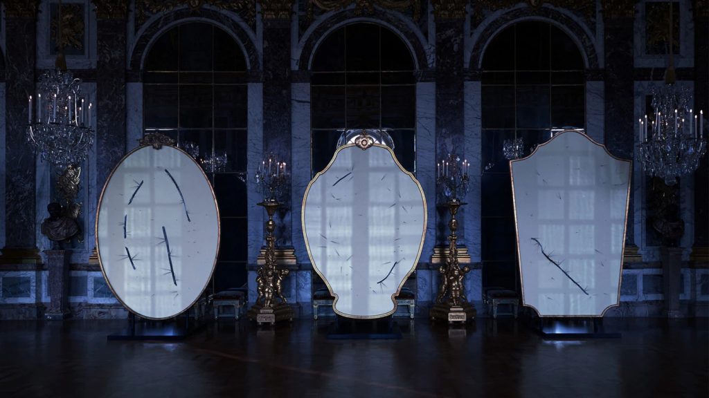 «Specchio, specchio delle mie brame, chi è la più bella del reame?». Il volto arcigno della matrigna di Biancaneve nel film di Walt Disney ha terrorizzato milioni di bambini per decenni, proiettando sull’umana vanità un’ombra nera, mentre nel sequel di un’altra fiaba notissima, Alice nel paese delle meraviglie, intitolato Attraverso lo specchio, Alice entra in un mondo incantato passando attraverso uno specchio magico. Suggestioni che potrebbero aver suggerito a Maria Grazia Chiuri, direttore artistico della maison Dior, di invitare l’artista Silvia Giambrone a presentare La Galleria delle ombre, una nuova serie di opere creata per l’occasione, nella Galleria degli Specchi a Versailles, nel contesto della sfilata on line della collezione donna prêt-à-porter autunno/inverno 2021.