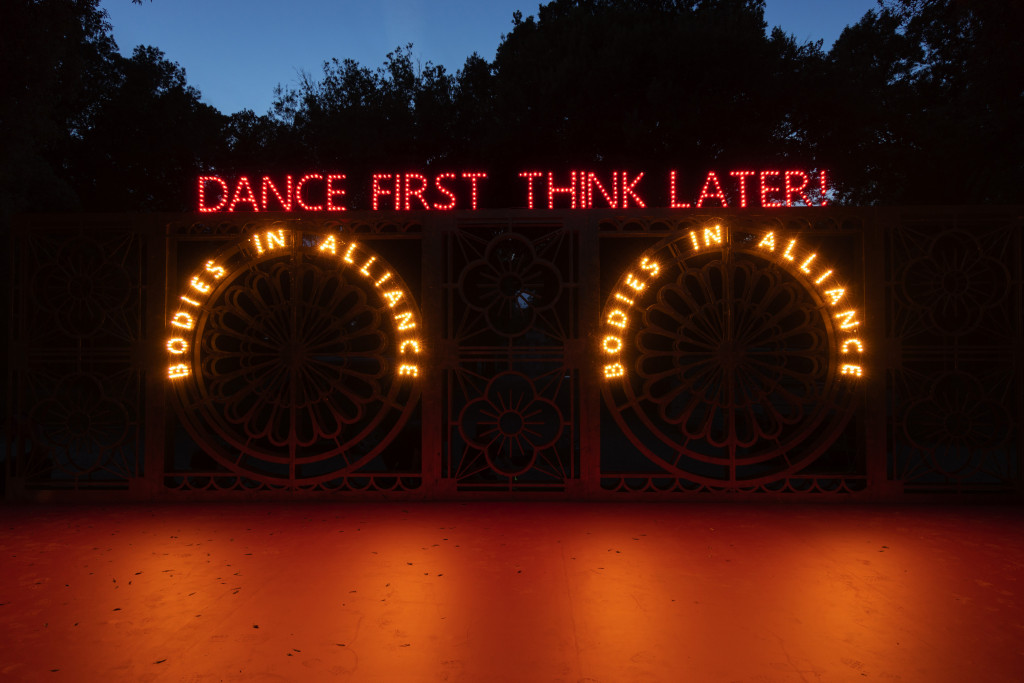 Marzia Migliora suggerisce l’idea di libertà espressa nel concetto del ‘volo’, elaborato in collaborazione con le detenute del carcere femminile di Rebibbia. Mirella Senatore con il suo Assembly, ci invita ‘prima a ballare, poi a pensare’ in un dialogo performativo e contemporaneo programmato da e per il visitatore. Azione, ribellione, partecipazione, leggerezza e poi riflessione per ridisegnare nuovi canoni sociali.