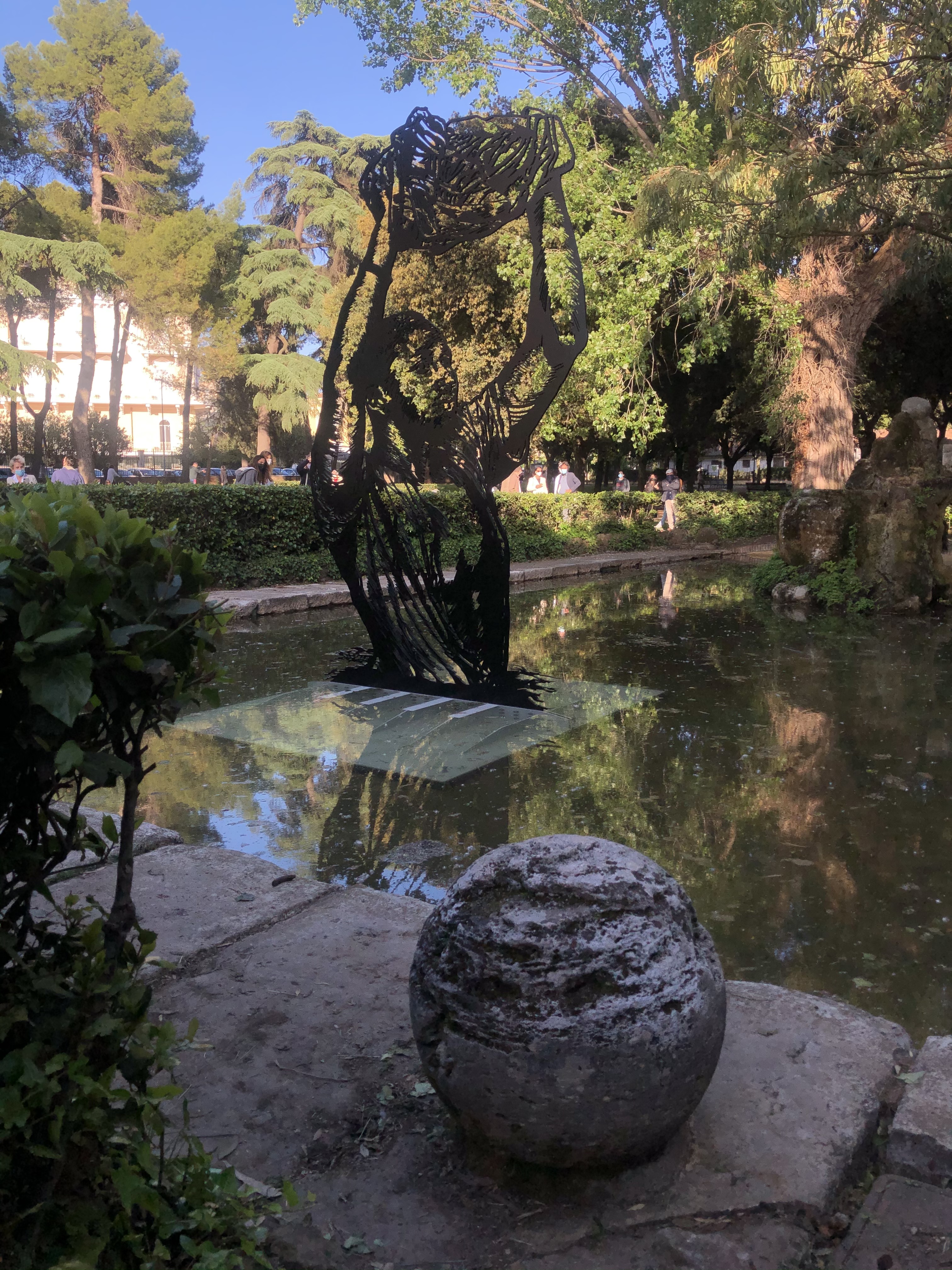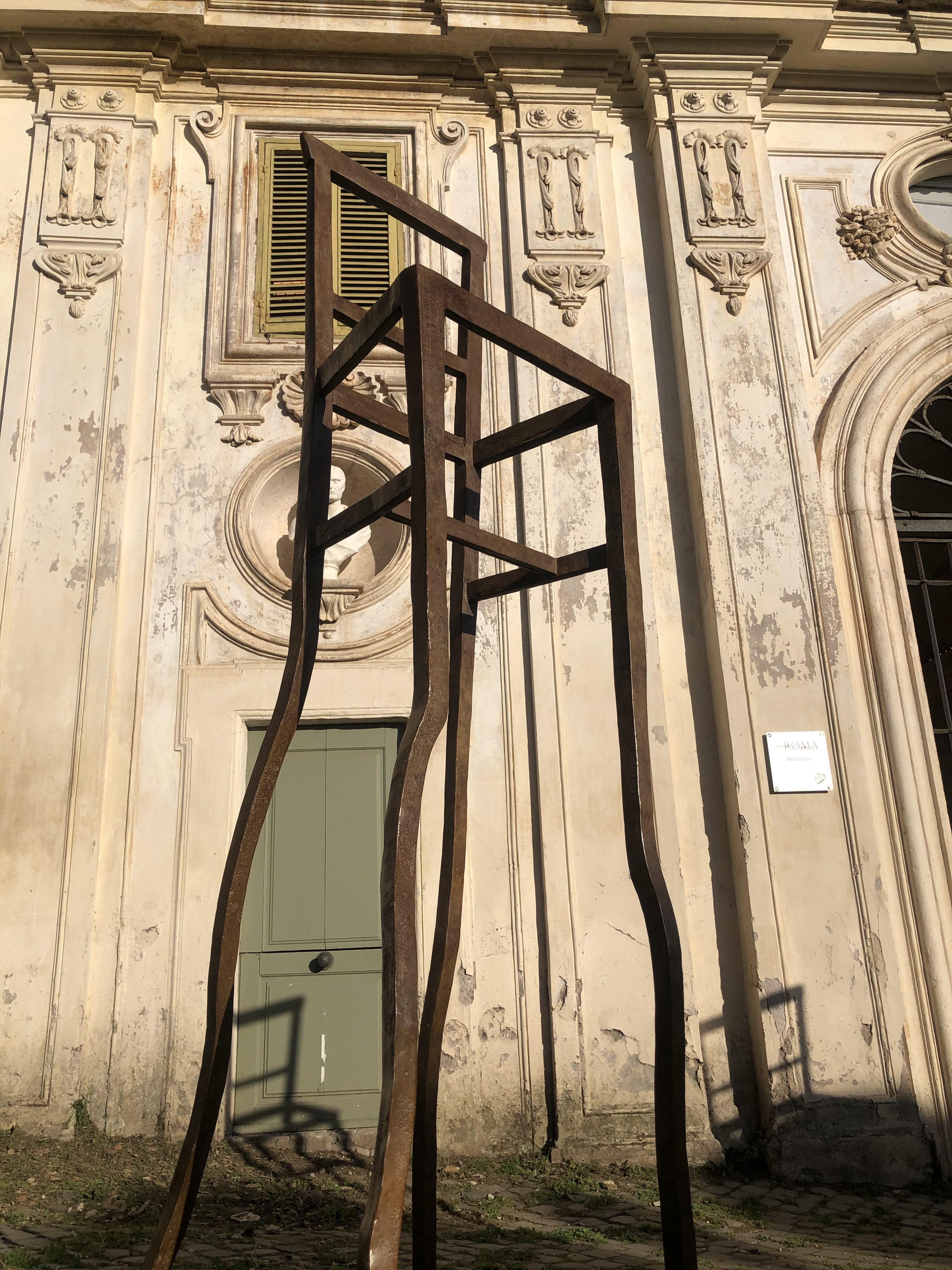 Dai toni alti e intrisi di idealismo riscontrabili nel Migrante di Ruffo, (immerso nella fontana del Sileno, che omaggia Roma e la nascita della sua civiltà grazie al lungo viaggio migratorio del leggendario Enea), o dal sottile equilibrio tra possibile e impossibile, tra ignoto e manifesto, ridisegnato nella Città Eterna e sospesa di Erlich, si passa a disegni che sembrano tracciati dall’aria, mossi dal vento e vibranti delle stesse vibrazioni terrestri espresse nelle linee ondulanti degli Eroi di Gallo, posti all’ingresso del percorso espositivo.
