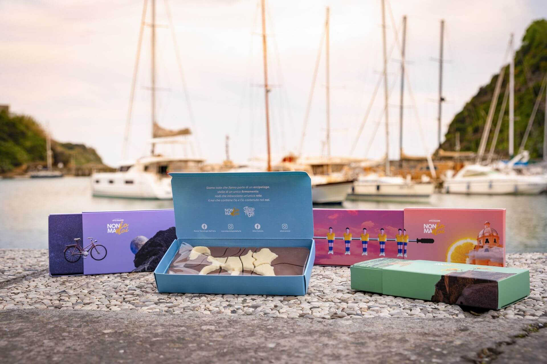 Per il momento, agli abitanti di Procida sono state consegnate 702 barrette di cioccolato – che è il regalo per eccellenza, «Mai presentarsi a casa di qualcuno a mani vuote» – personalizzate a forma della propria isola preferita. Sono state inoltre effettuate 600 scansioni 3D, dalle quali, utilizzando materiali plastici di scarto ritrovati, verranno realizzate altrettante e più stampe 3D: l’obiettivo è ritrarre – altro atto di grande empatia, ci si offre l’uno all’altro, soggetto e oggetto si dichiarano e, spesso, cambiano posto – tutti gli abitanti di Procida.