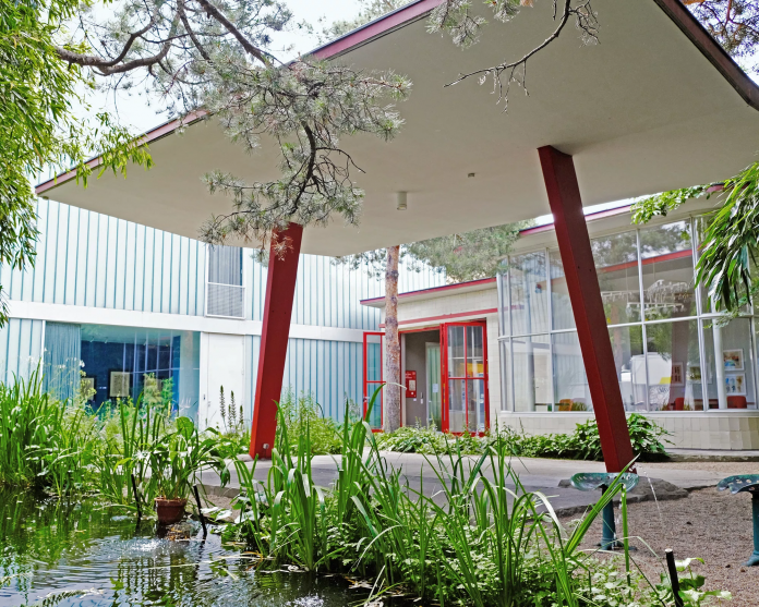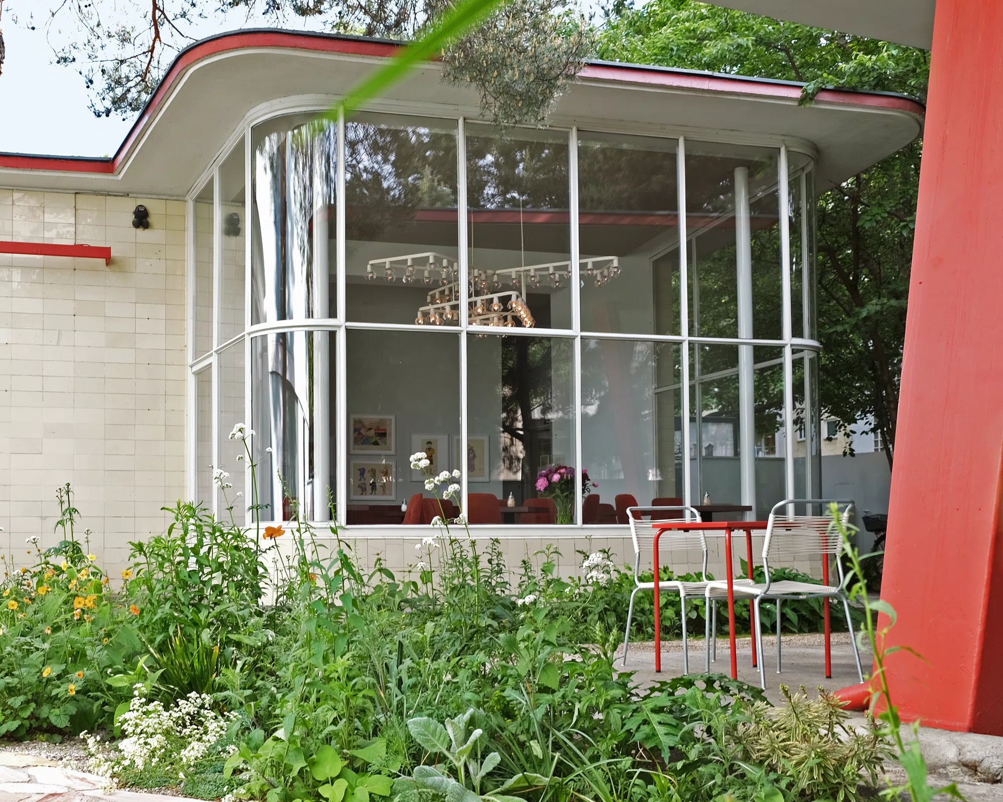 Risalente al 1954, durante la ricostruzione postbellica di Berlino Ovest, la stazione di servizio ha vissuto decenni di abbandono fino a un radicale restauro completato nel 2008, supervisionato da Thomas Brakel e bfs design sotto la direzione di Juerg Judin. Il restauro ha preservato gli elementi modernisti distintivi della struttura, tra cui la pensilina rossa, la porta del garage e l’ex spazio di vendita, aggiungendo una biblioteca, un’ala aggiuntiva per esporre opere d’arte e un giardino progettato dall’architetto paesaggista Guido Hager.