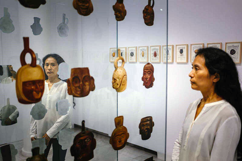 Nata a Lima nel 1972, Sandra Gamarra Heshiki vive e lavora tra Madrid e la capitale peruviana. Utilizza figurativamente la pittura per interrogare l’arte ei suoi meccanismi di rappresentazione, esposizione e commercializzazione. Basato sull’appropriazione, il suo lavoro funziona come uno specchio che sposta i formati espositivi, altera il circuito delle immagini, sovverte la proprietà della cultura, così come la relazione tra l’oggetto d’arte e lo spettatore. All’interno di questo campo di ricerca, l’eredità del suo Paese d’origine genera uno sguardo sincretico in cui si scontrano culture precolombiane, coloniali e occidentali.