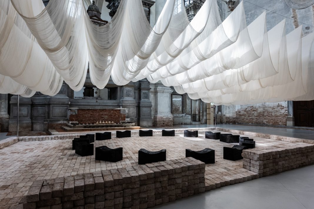 L’artista franco-vietnamita, inoltre, tesserà un’opera collettiva chiedendo ai visitatori di annodare fili e fibre in un unico gomitolo colorato che racchiude in sé un messaggio di speranza e fiducia per l’essere umano. Parul Thacker realizza delle strutture complesse che attingono all’iconografia dei templi indiani, rivelando un inesauribile legame con la propria cultura. Tra le opere site specific realizzate, Thacker ha progettato, per il piano terra, una grande installazione composta da 22 teli in organza di seta, movimentata da una colonna sonora che accorda i suoni della Rudra veena, antico strumento indiano, ai rumori del Canal Grande e allo sciabordio delle acque dell’Artico.