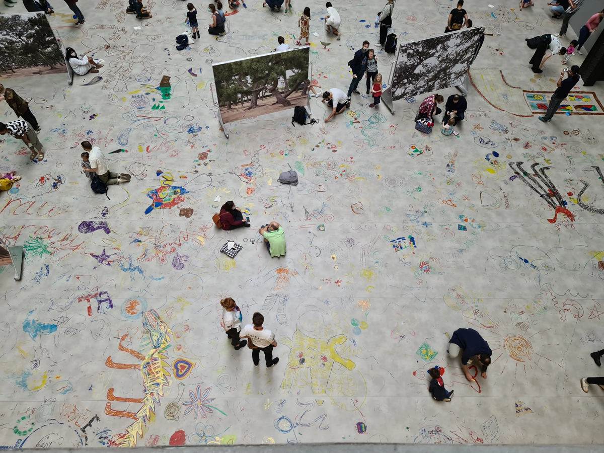 Questa installazione performativa ha trasformato lo spazio iconico della Turbine Hall in un laboratorio, dove ogni visitatore era invitato a diventare parte attiva dell’opera. L’installazione si sviluppava attorno a una superficie enorme, una parete bianca che fungeva da spazio aperto per disegnare, scrivere e scatenare la propria creatività. La possibilità di agire su questa tela collettiva ha dato vita a un flusso continuo di segni, tracce e immagini, creando un vero e proprio “corpo” di disegni che si è sviluppato con il passare dei giorni.