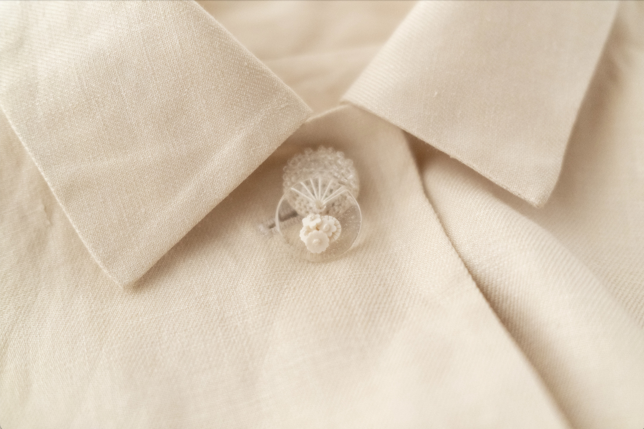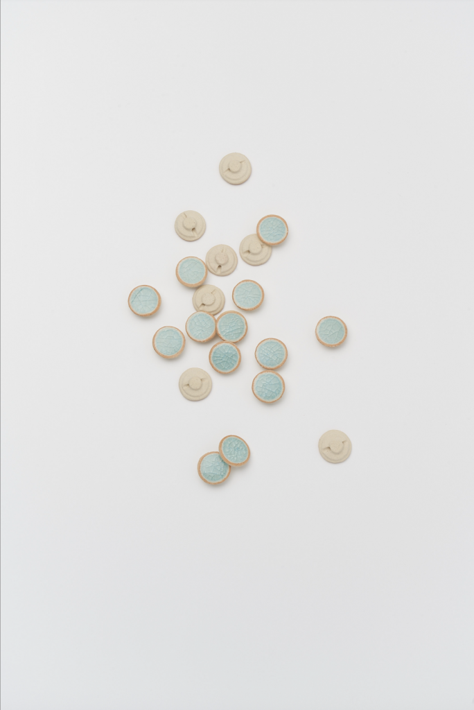 Si tratta del progetto inaugurale dei Project Room di Numero 51 – un format dedicato a iniziative non strettamente legate all’arte contemporanea, ma comunque affini – e ruota attorno al lavoro dell’artista giapponese Yuuka Miyazono, che realizza bottoni in vetro, ceramica, resina e corno. Esemplari fatti a mano, oppure progettati dall’artista e realizzati in edizione limitata o come pezzi unici. Ognuno è pensato come un piccolo intervento di design applicato al tessile: forme, superfici e colori sono studiati per dialogare con il tessuto e modificare la percezione dell’abito che li accoglie. Il tutto curato con la consueta cura meticolosa della galleria Numero 51, che arricchisce l’installazione con le carte giapponesi Takeo – scelte appositamente per far risaltare il bottone, ed evocando le texture dei tessuti.