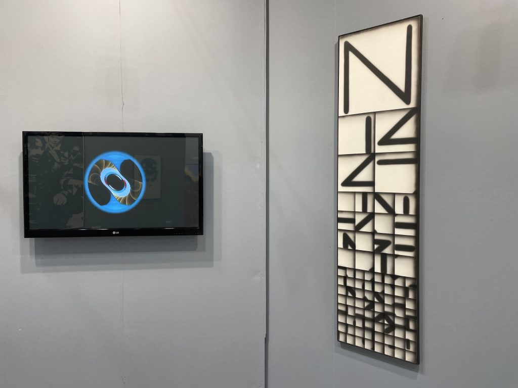 Cristiano (Calori, Direttore della Galleria Elleni), come si colloca oggi, rispetto alla contemporaneità, l’opera di Di Bello? «Trovo il lavoro di Bruno Di Bello assolutamente contemporaneo e quanto mai attuale. Lo spirito del tempo fa percepire solo agli artisti più colti e attenti i temi più urgenti della contemporaneità. All’inizio negli anni Sessanta, Bruno comprese che l’immagine meccanica e dunque la tecnologia sarebbero entrati nella quotidianità e (di conseguenza) nell’arte, che anticipa di solito quanto avviene nella società. Il pensiero di Walter Benjamin – L’opera d’arte nell’epoca della sua riproducibilità tecnica, edito nel 1936 e tradotto in Italia nel 1966 – cominciava a germogliare. Se pensiamo al bombardamento d’immagini a cui siamo sottoposti quotidianamente attraverso i vari social network – Facebook, Instagram, Youtube, Whatsapp, Messanger – è facile comprendere la visionarietà del lavoro di Bruno Di Bello che si è sempre interessato alle possibili applicazioni della tecnologia nell’arte. Addirittura il suo ultimo lavoro con la geometria dei frattali non rimanda forse al tema dell’intelligenza artificiale?»