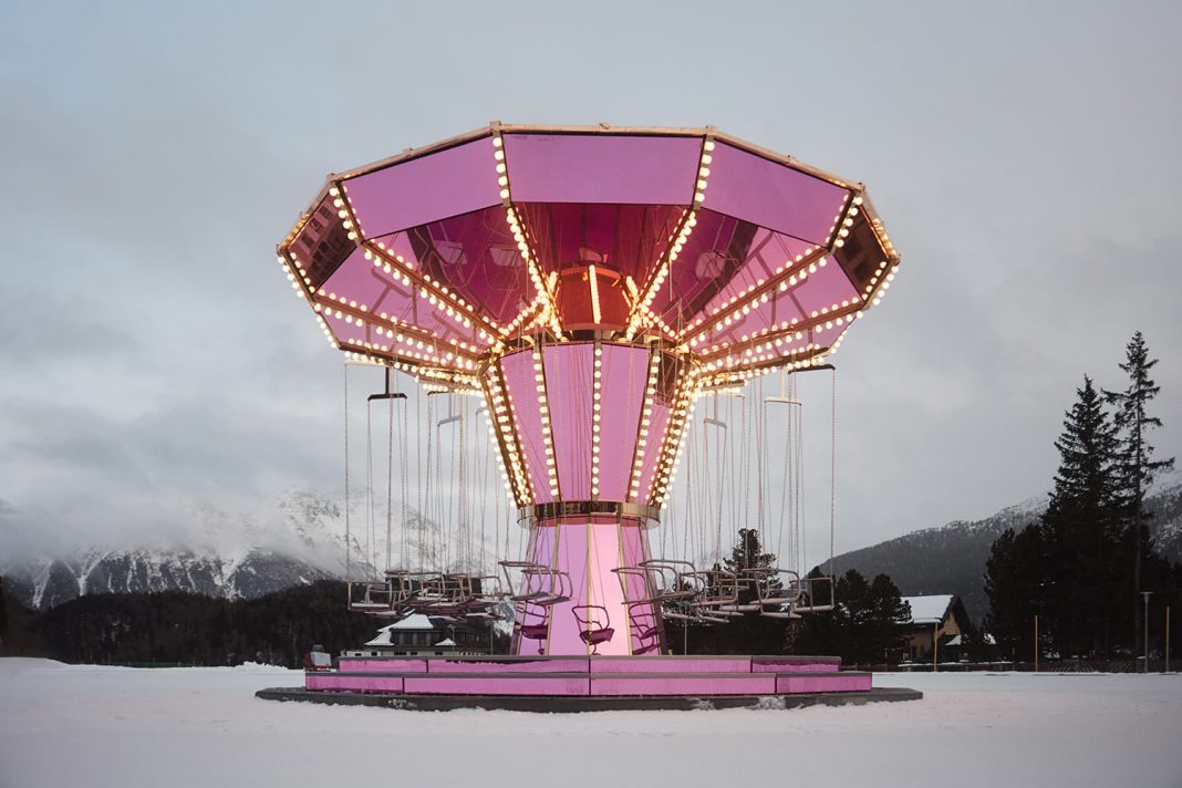 Carsten Höller porta una giostra rosa nel paesaggio innevato di St. Moritz