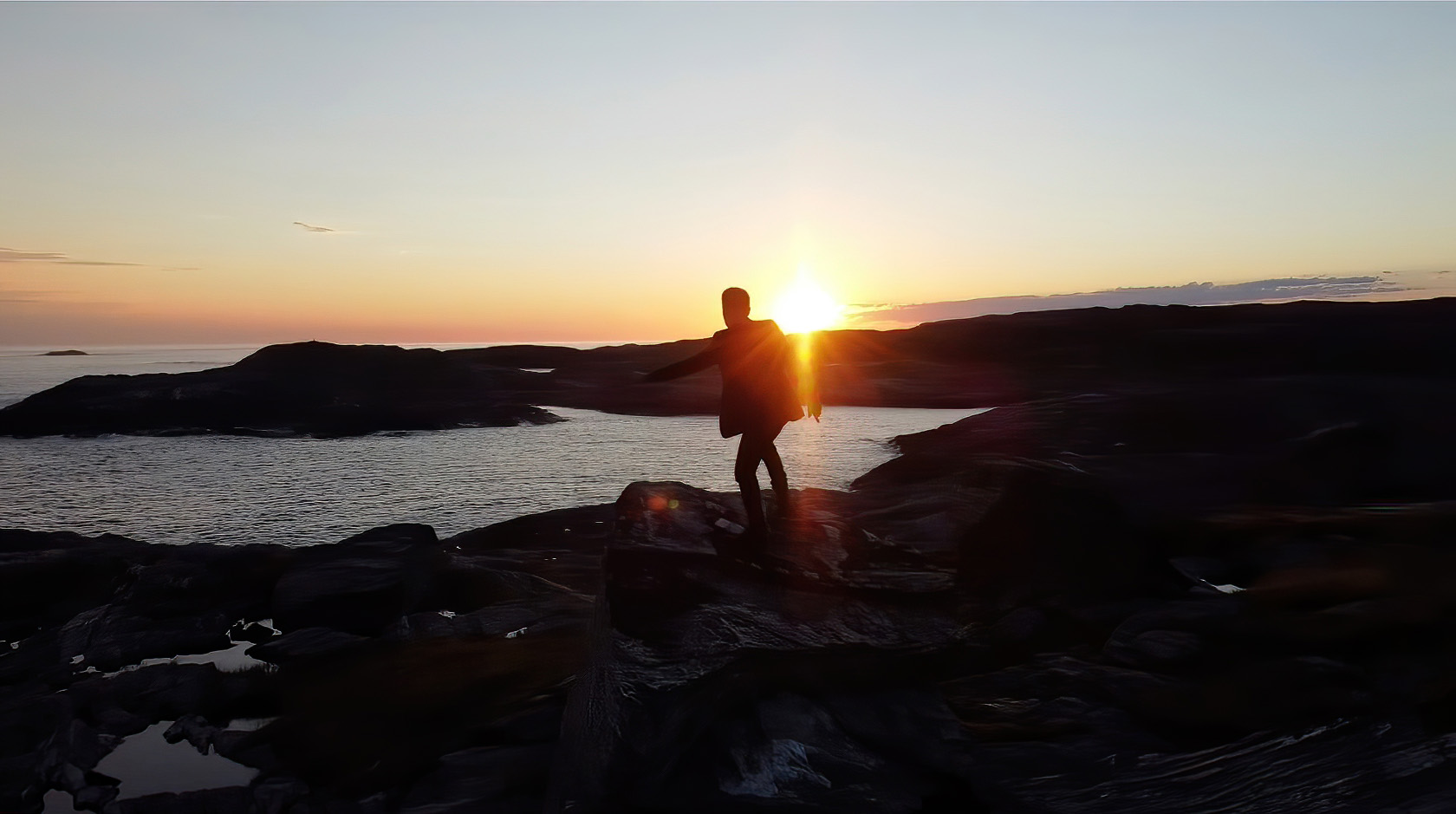 Attraversato un difficile percorso in equilibrio tra rocce metamorfiche antichissime a picco sugli scogli e taglienti lame di pietra, ho raggiuto l’affaccio sul mare aperto, il Mare del Nord. Una volta lì, ho meditato a lungo, per ore, per trovare il luogo giusto. Una roccia particolare, su cui sono balzato per poter osservare più in là.
