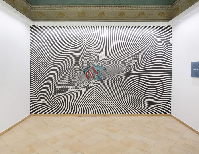Le basi ludiche su cui poggia la mostra sono chiare da principio, si stringe tra le mani un’opera senza saperlo: è Holding in Luigi Di Maio’s pee for him di Darren Bader, un’opera di arte relazionale pura che sublima il suo numero uno nella brochure della mostra. L’inglese Helen Marten continua il percorso con Untitled, una litografia unita a collage e pittura che riafferma la creatività umana nel mondo della materia da macello.