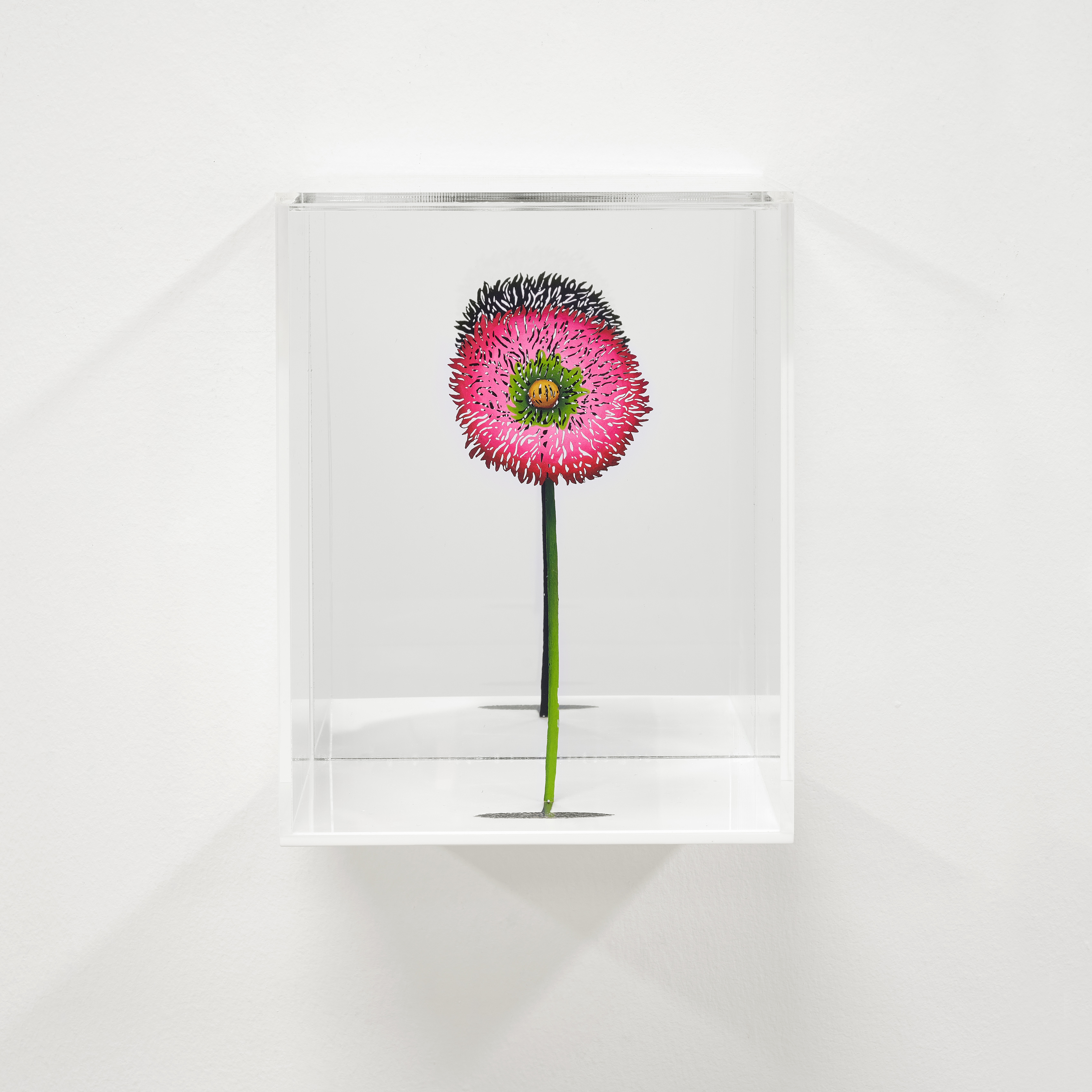 Non tutto è perduto, così come comunicano le opere di Zadok Ben-David all’interno della mostra allestita da Nashira Gallery, che rende visibile la duplice realtà in cui il singolo vive e agisce. Esposte a parete, una serie di piante e fiori in acciaio sono custoditi sotto teca come per segnalarne la loro preziosità e importanza. Lo specchio retrostante sottolinea il loro essere indispensabili per la biodiversità e l’incessante lotta per la sopravvivenza. Simbolo di questa battaglia sono le sfumature multicolori intervallate da quelle nere sul lato opposto. È il caso del soffione di tarassaco rosa Changing Mood 5 (2023) e delle numerose varietà di vegetali in Desert Bloom (2021).