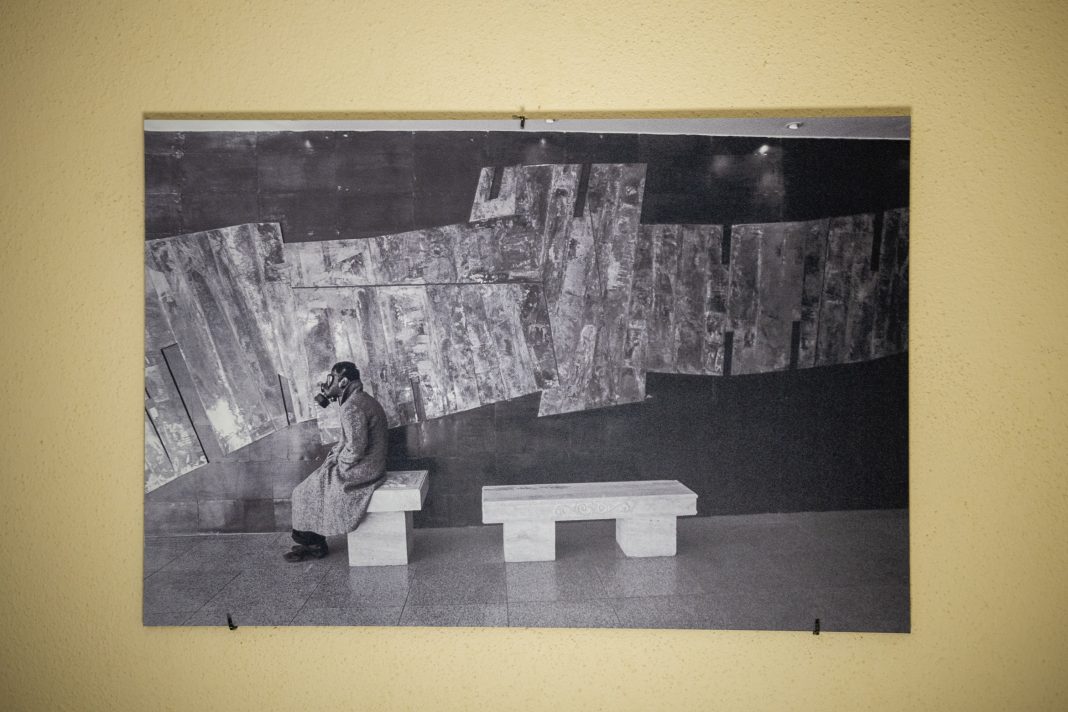 Il racconto si svolge tra le vie di Teheran e racconta speranze, illusioni, resistenza e resilienza che anima la quotidianità dei giovani iraniani. Le fotografie in severo bianco e nero del videoartista e fotografo basato a New York Tooraj Khamenehzadeh raccontano di un personaggio spaesato, fragile e bisognoso di aiuto. Descrivono la condizione di isolamento e resistenza silenziosa cui sono costrette le popolazioni del grande paese, impossibilitate persino a respirare liberamente a causa dei miasmi di un potere che le riduce all’impotenza. Alle fotografie di Tooraj, fa da contrappunto il video Strappa di Sepideh Salehi e Kamran Taherimoghaddam, basato sull’alternanza fortemente ritmica e incalzante di due scene: i tamburi suonati da musicisti uomini e i veli neri strappati da un gruppo di donne vestite di nero, ma altere, sicure di sé nella consapevolezza di un gesto che rompe con le regole, i soprusi, la sottomissione. Infine, nelle segrete del sotterraneo, l’artista Sima Shafti inanella sete, specchi, polveri sgargianti per comporre una sorta di tappeto, che nell’antica Persia era metafora del famoso e meraviglioso giardino orientale. La minuta e decorata installazione a terra, viene completata dal gesto performativo dell’artista, che si taglia la lunga treccia e la getta al centro, quale gesto di rifiuto di un sistema millenario basato sul patriarcato e l’aristocrazia religiosa del potere.