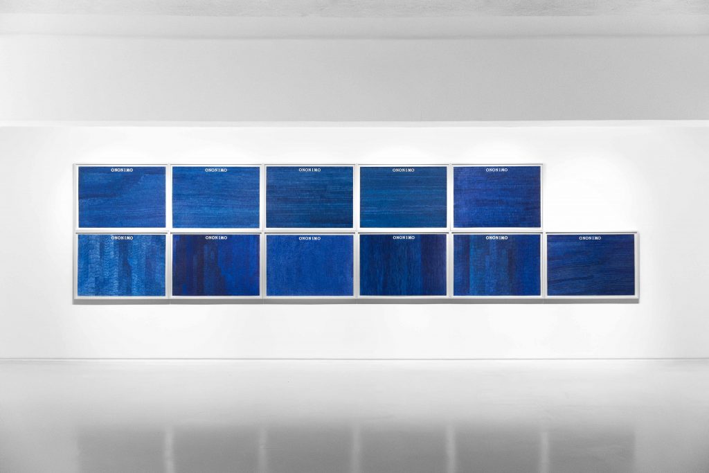 Negli anni Settanta questo approccio si amplia e si fa sempre più articolato: Boetti abbandona progressivamente la dimensione puramente materiale per lavorare su linguaggi, classificazioni, codici. È qui che nascono alcuni dei suoi cicli più noti, come i Biro, realizzati attraverso una fittissima colorazione a penna su carta, che trasformano un gesto ripetitivo in un sistema visivo complesso. La ripetizione diventa metodo, ma anche dispositivo temporale, il tempo del fare entra nell’opera.