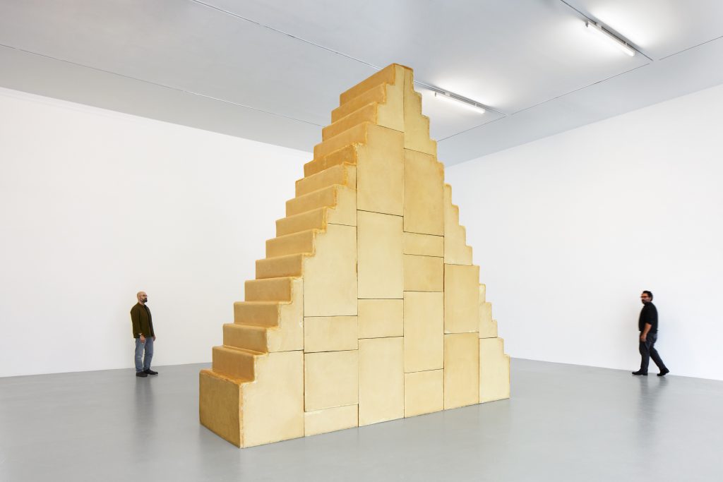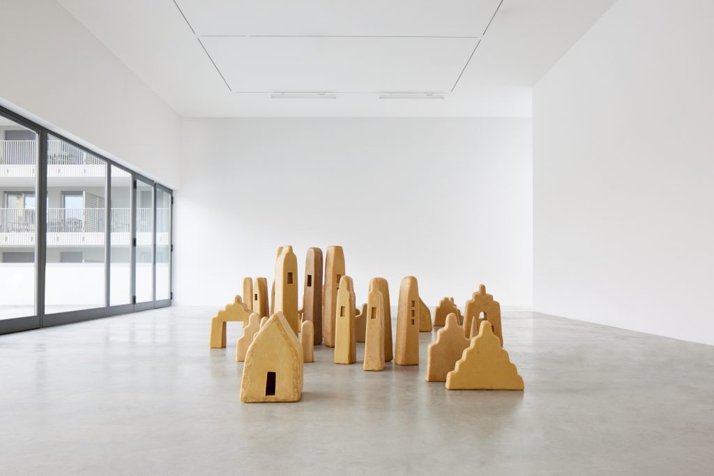 La dimensione spirituale che avvolge l’opera di Laib è evocata sin dal titolo della mostra ospitata negli spazi milanesi della Galleria Lia Rumma: … e vidi cose che ridire né sa né può …, verso estratto dal proemio del Paradiso dantesco in cui il sommo poeta riconosce la difficoltà di narrare il viaggio mistico che si accinge a percorrere. Ed è proprio come un viaggio ascensionale che viene concepita l’esposizione, la prima personale in galleria. A dare il benvenuto ai visitatori si erge Zikkurat (2000), un’imponente struttura alta 4 metri interamente rivestita di cera. Questa creazione richiama gli antichi edifici religiosi della Mesopotamia, regione più volte visitata da Laib, in grado di connettere la terra ed il cielo, gli uomini con Dio. La forma tipica di questo edificio diverrà a partire dal 1995 un motivo ricorrente all’interno delle sue installazioni, come possiamo constatare in City of Silence (2015-2023) la seconda opera in mostra. Si tratta della riproduzione di una piccola città ideale composta da trentaquattro sculture-edifici realizzate anch’esse in cera d’api. Accanto alle immancabili ziqqurat trovano posto torri del silenzio ed edifici le cui fattezze traggono ispirazione dall’architettura italica medioevale. L’artista plasma materia viva e lo fa per creare quello che è a tutti gli effetti un paesaggio urbano; un’utopica visione in cui l’oriente e l’occidente si uniscono dando vita ad una città metafisica.